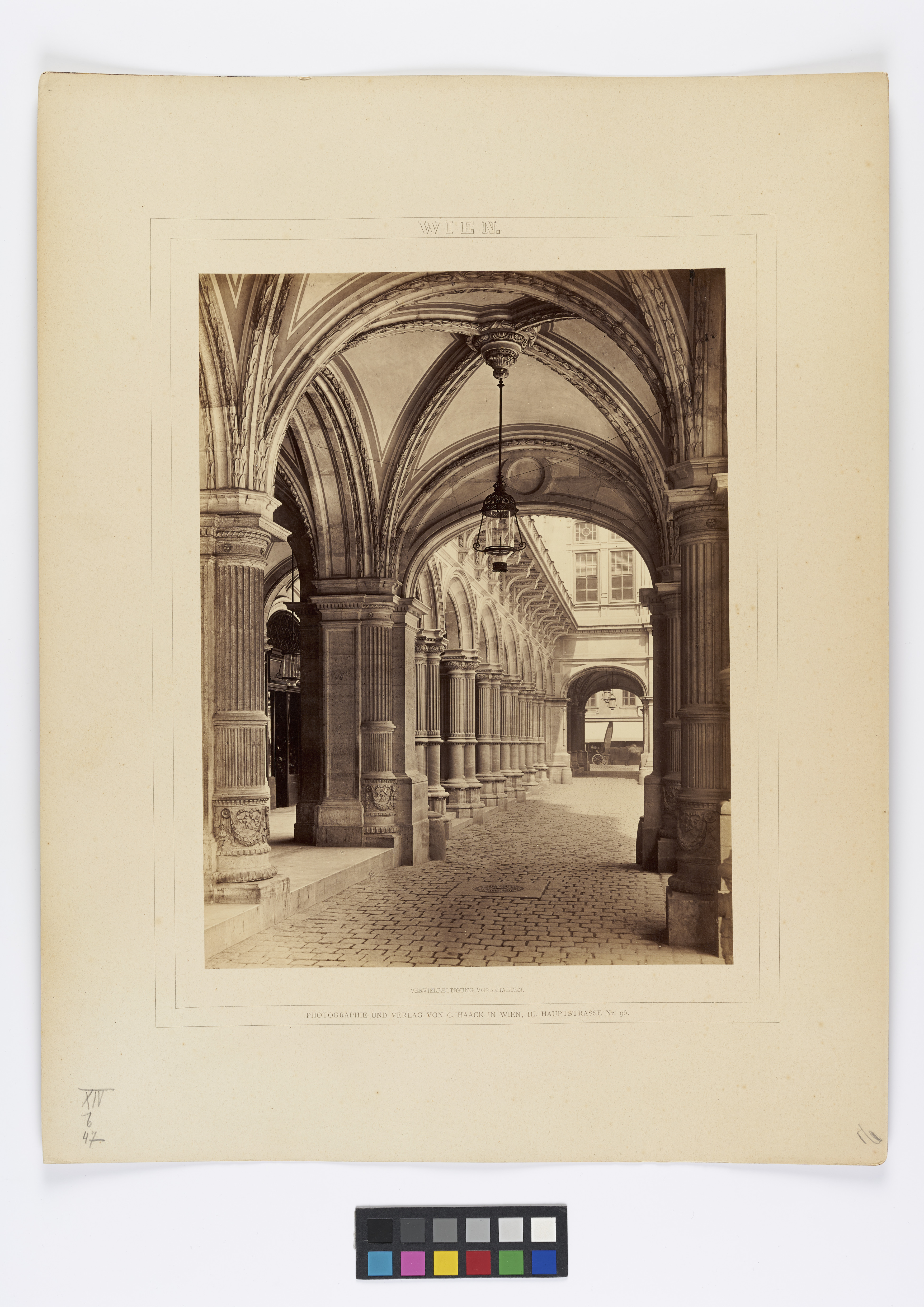1., Opernring 2 - Staatsoper - Blick entlang der Arkaden des östlichen Querflügels (Wagenvorfahrt) in Richtung Philharmoniker Straße