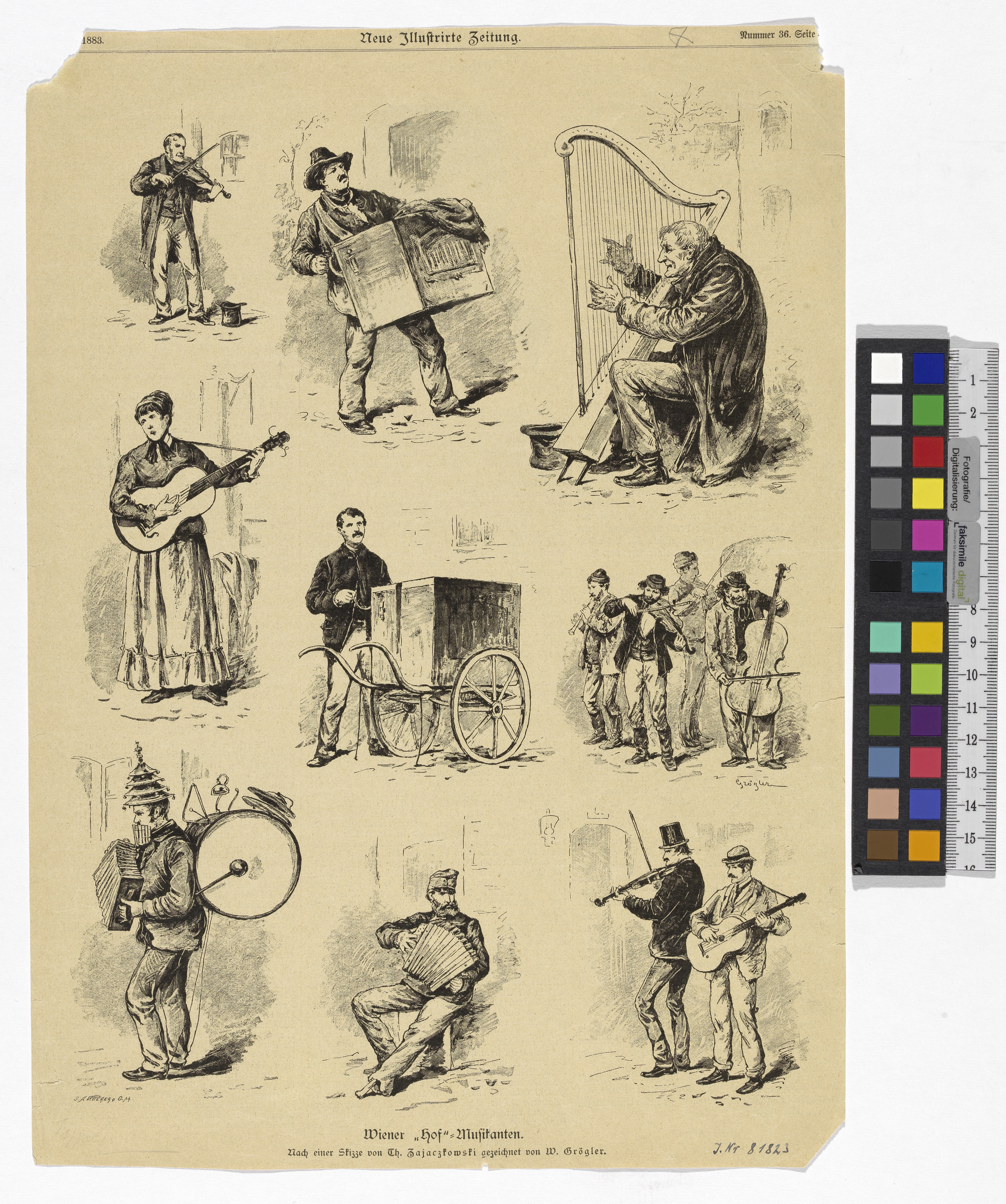 - "Wiener Hofmusikanten" (Neun Darstellungen von "Bettelmusikanten", Illustration aus der "Neuen Illustrierten Zeitung 36/1883)