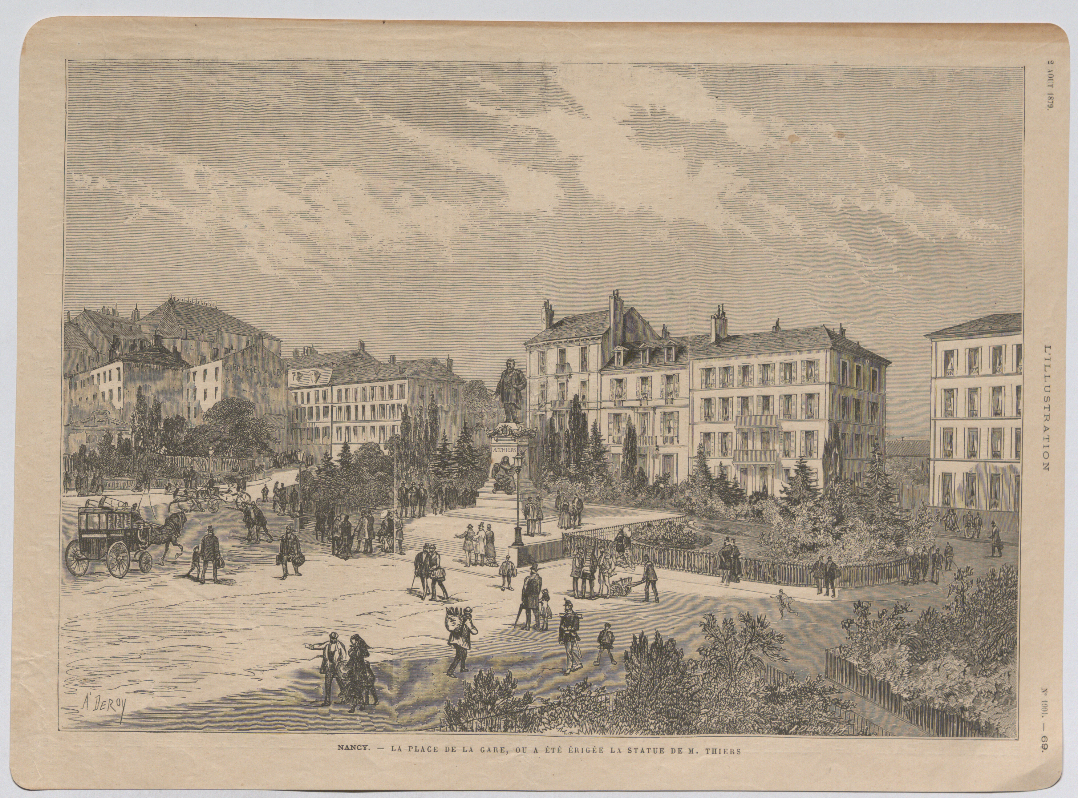 - Der Place de la Gare in Nancy mit der Statue Adolphe Thiers`(aus "L´Illustration. Journal universel")