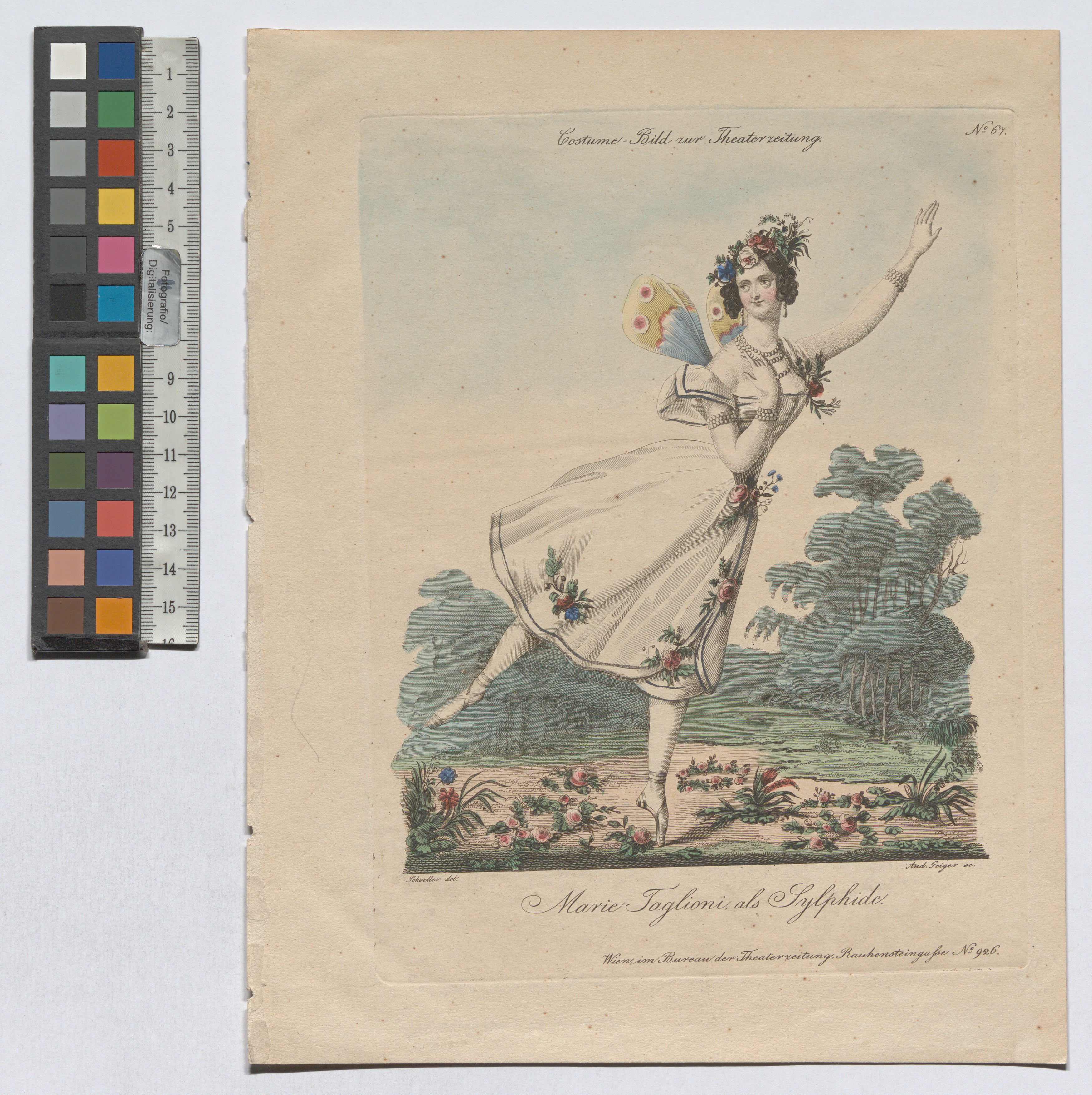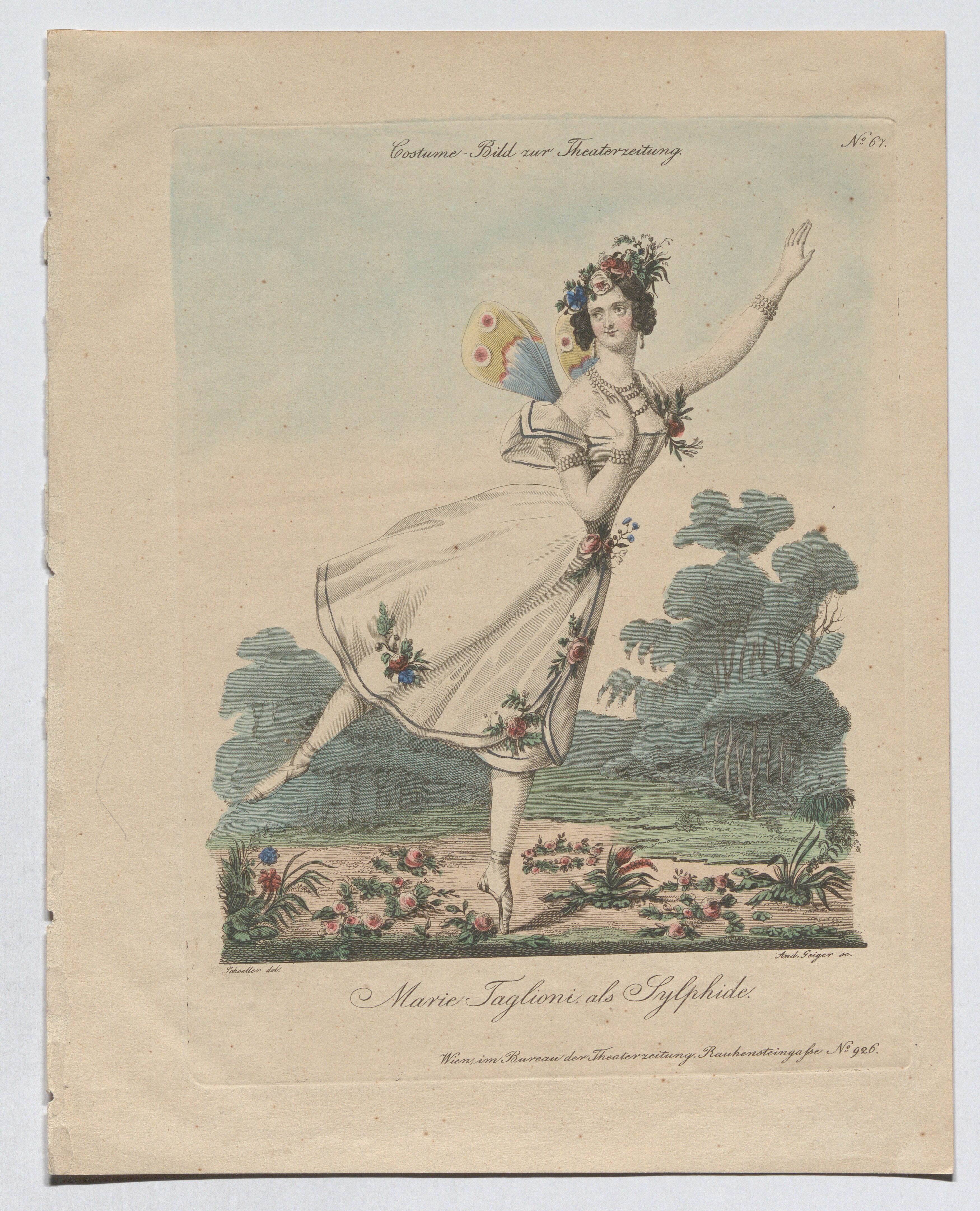 Marie Taglioni als Sylphide (Costümbild Nr. 67 zur Theaterzeitung)