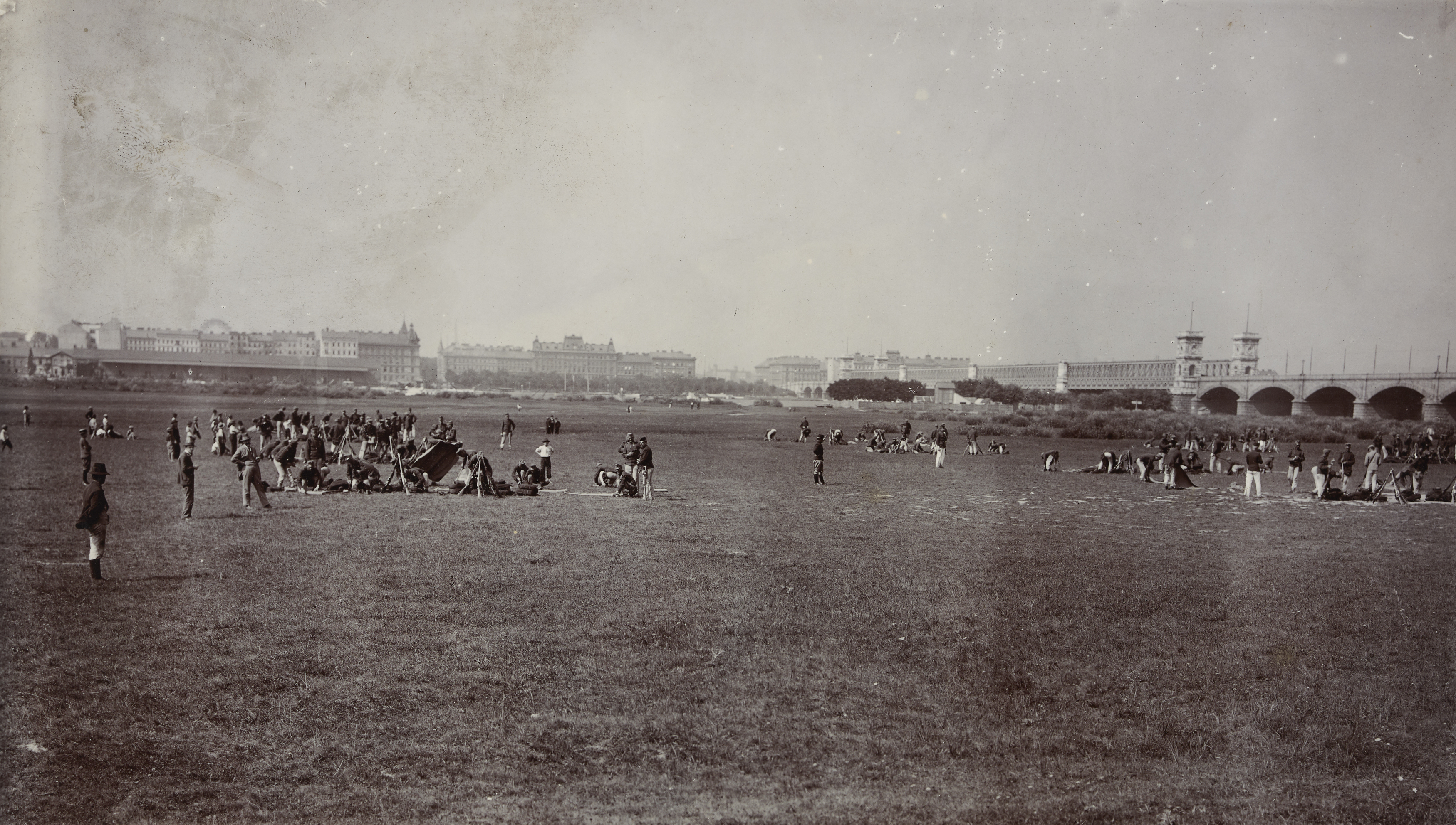 22., Überschwemmungsgebiet bei der Reichsbrücke mit Blick zum Handelskai - im Vordergrund: Soldaten mit Gewehren bei einer militärischen Übung