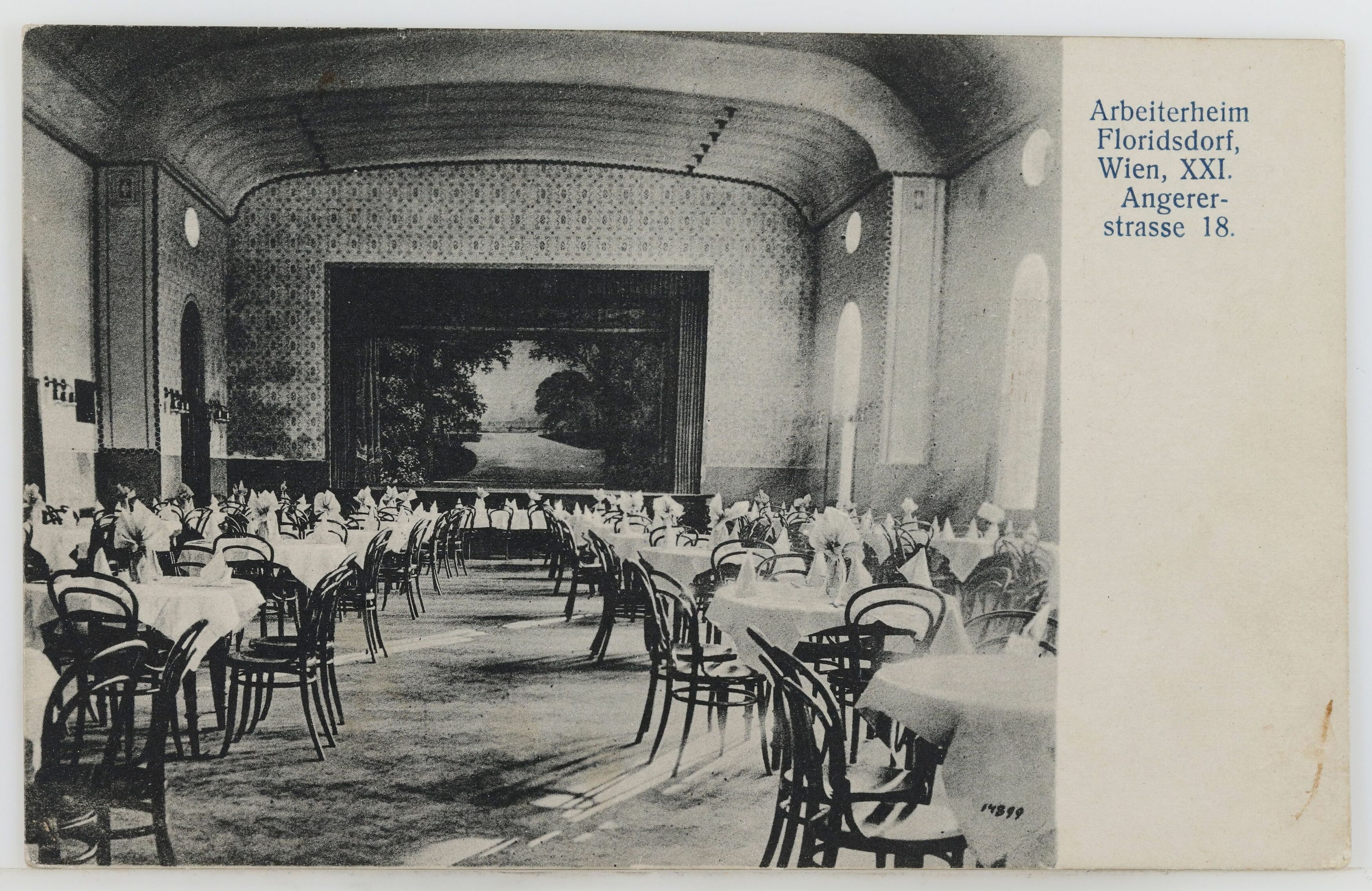 - 21., Angerer Straße - Arbeiterheim Floridsdorf, Speisesaal, Ansichtskarte