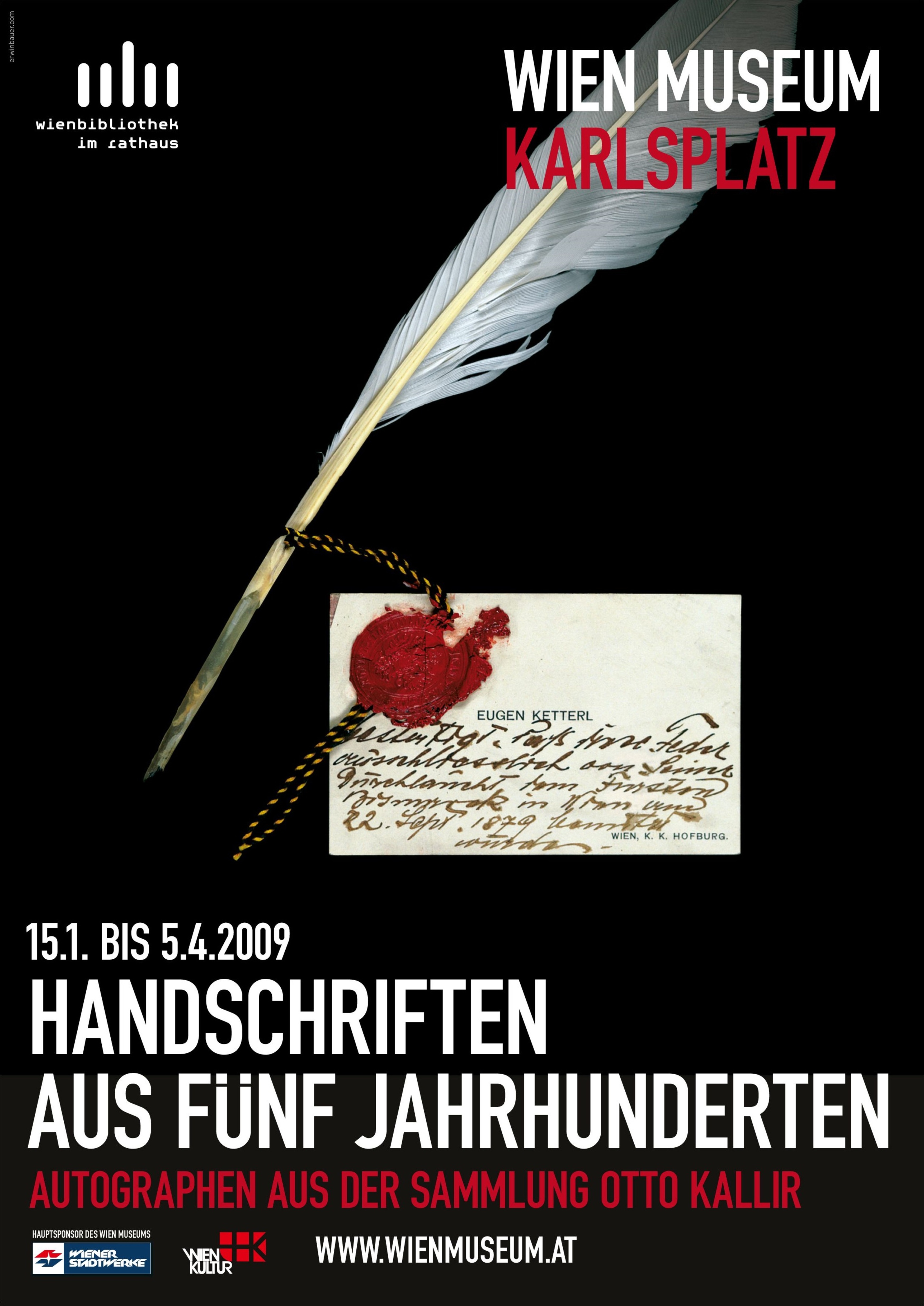 353. Sonderausstellung des Wien Museums: "Handschriften aus fünf Jahrhunderten. Autographen aus der Sammlung Otto Kallir", Plakat