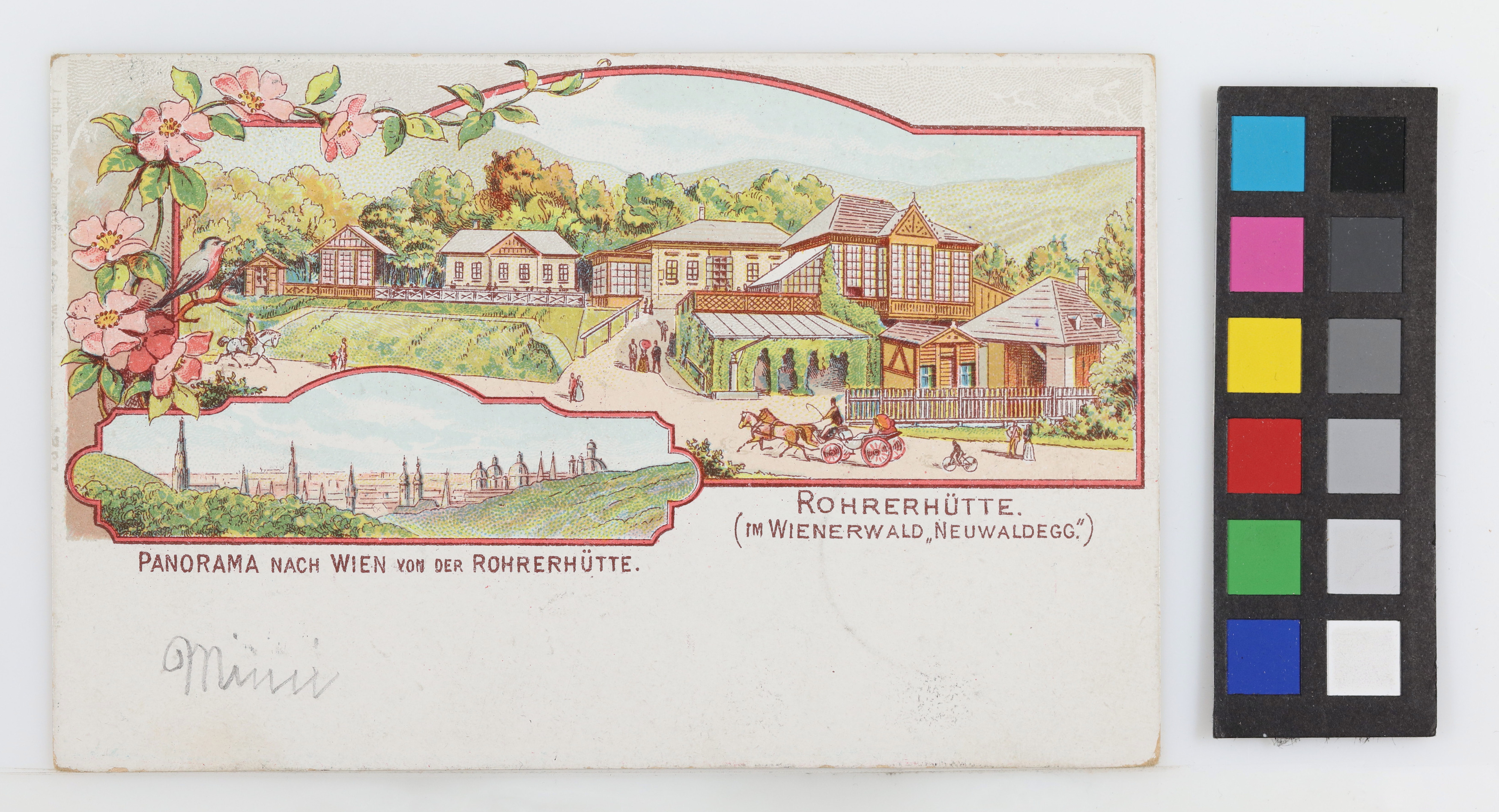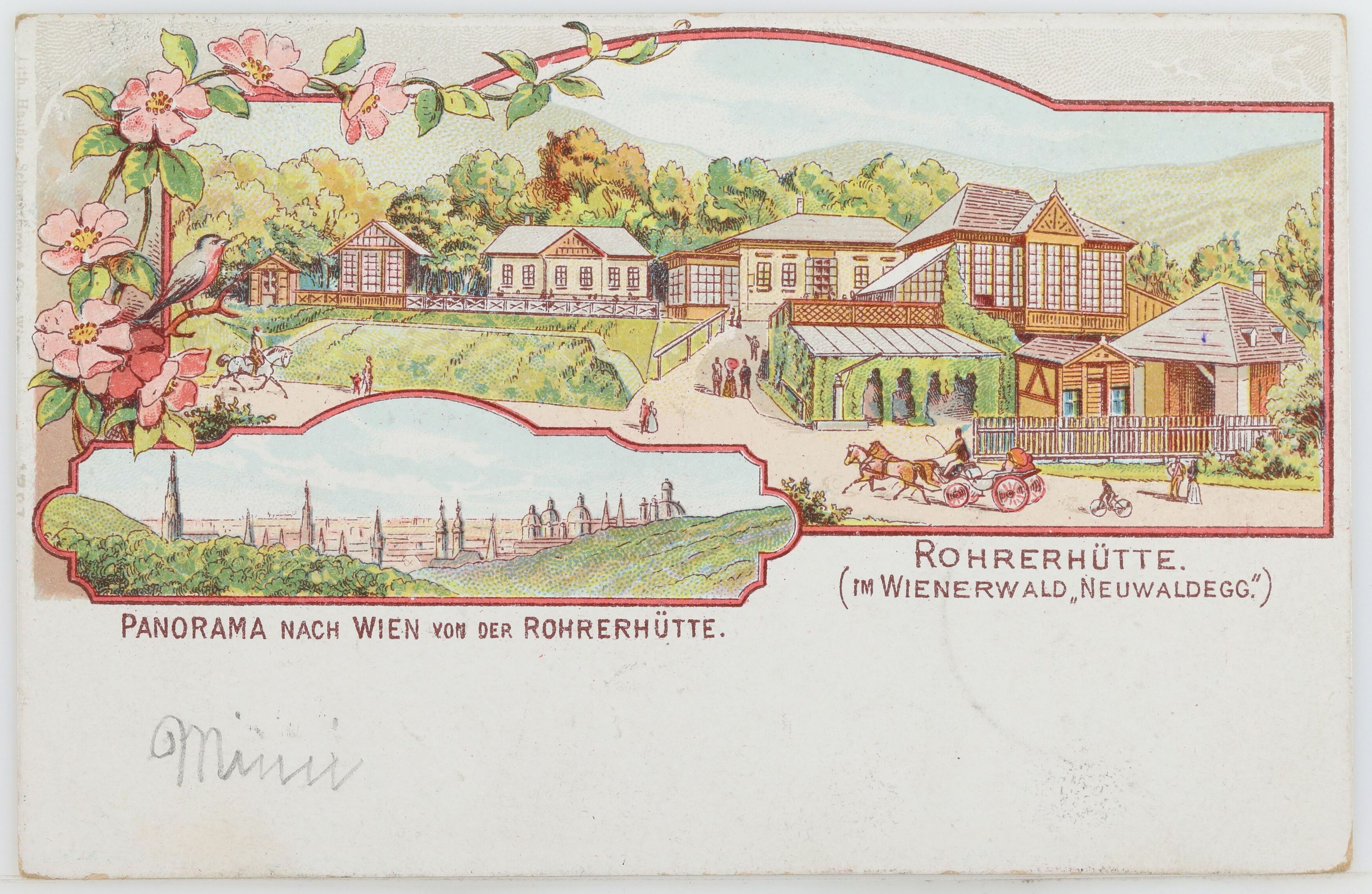 17., Neuwaldegg - Rohrerhütte und Panorama von Wien von der Rohrerhütte aus, Ansichtskarte