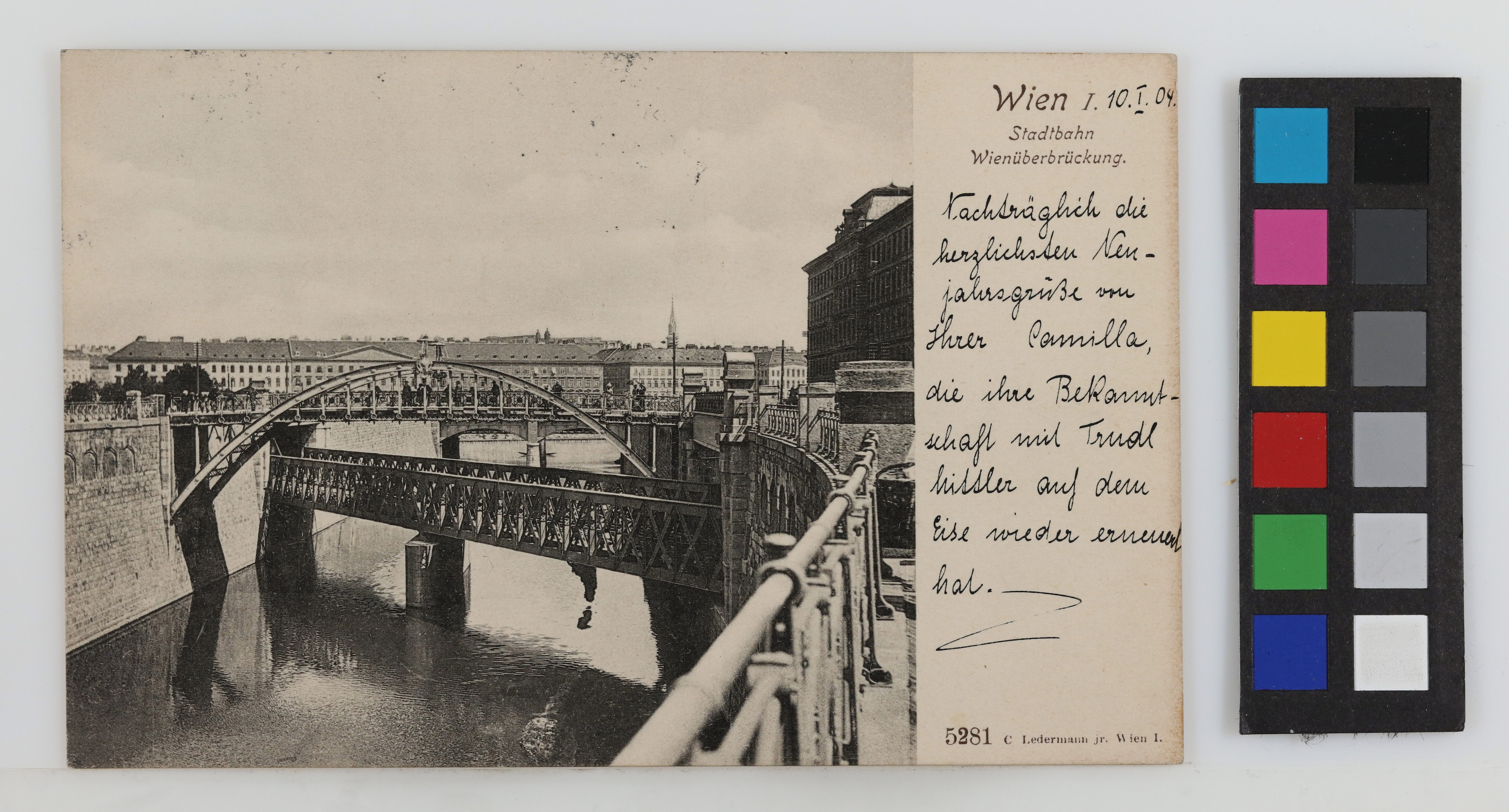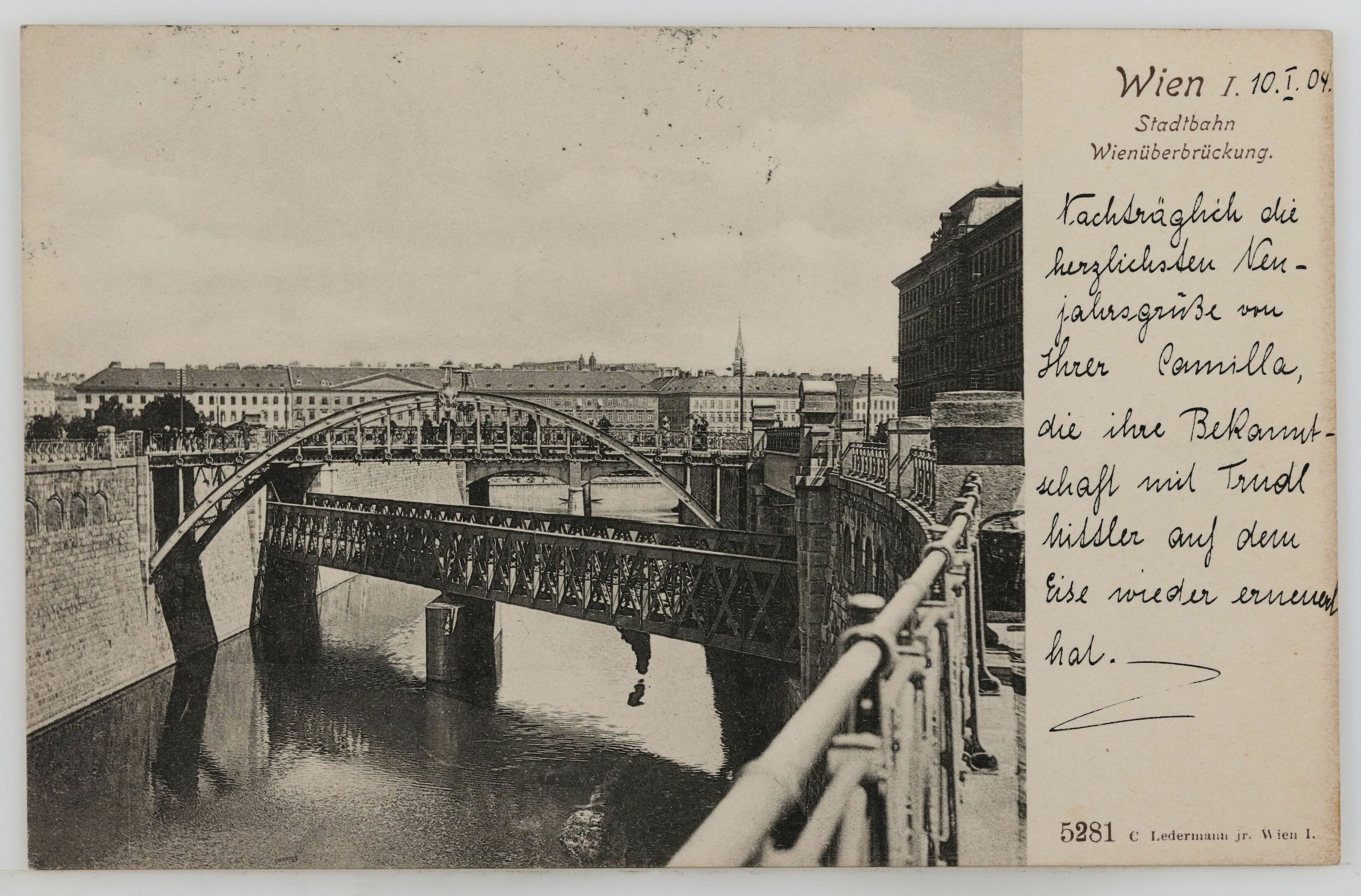 Nachträglich die herzlichsten Neujahrsgrüße von Ihrer Camilla, die ihre Bekanntschaft mit Trudl Mittler auf dem Eise wieder erneuert hat.Transkription / Übersetzung durch Ehrenamtliche im Rahmen der Crowdsourcing Aktion 2021/2022 (nicht überprüft durch das Wien Museum)