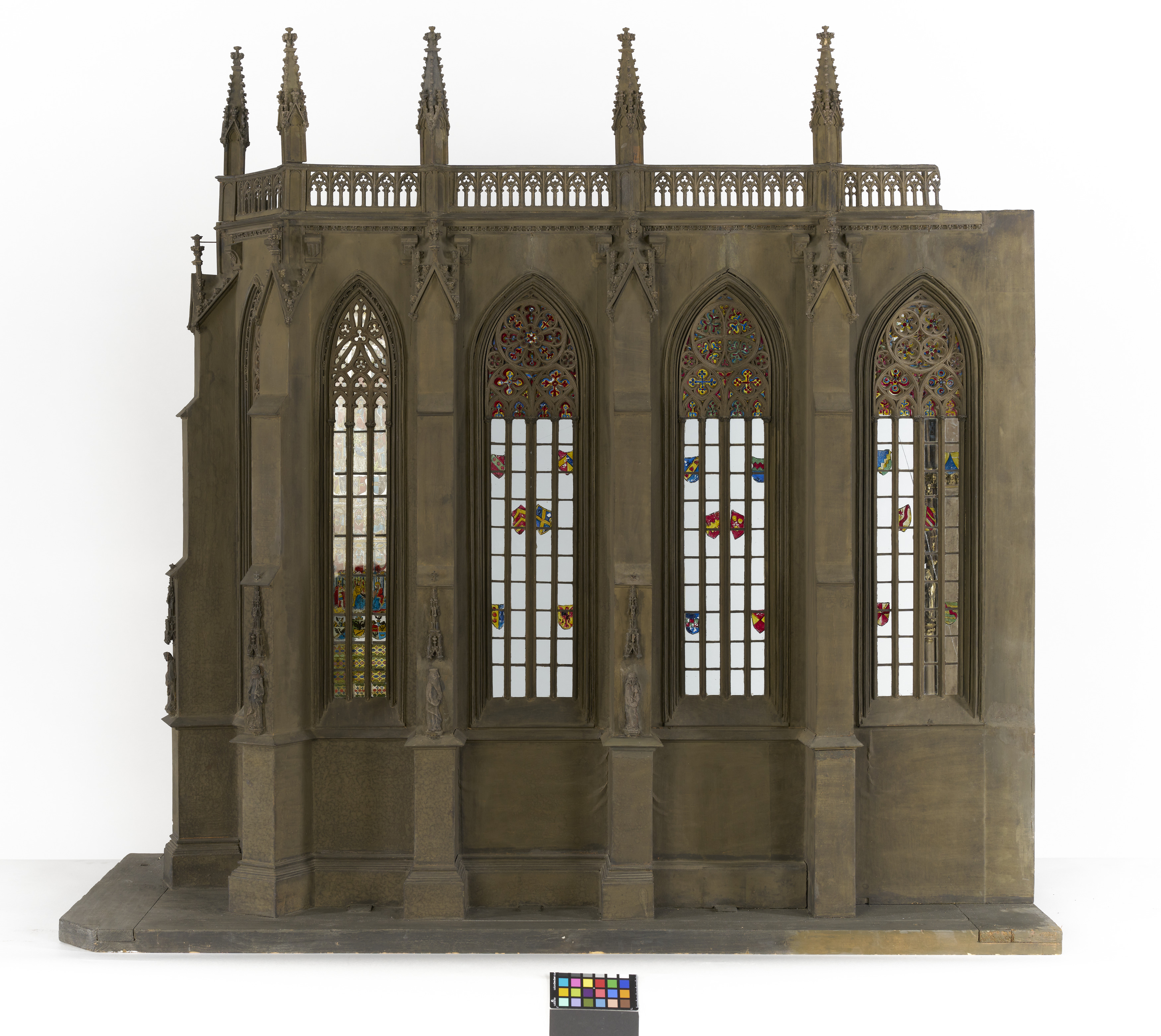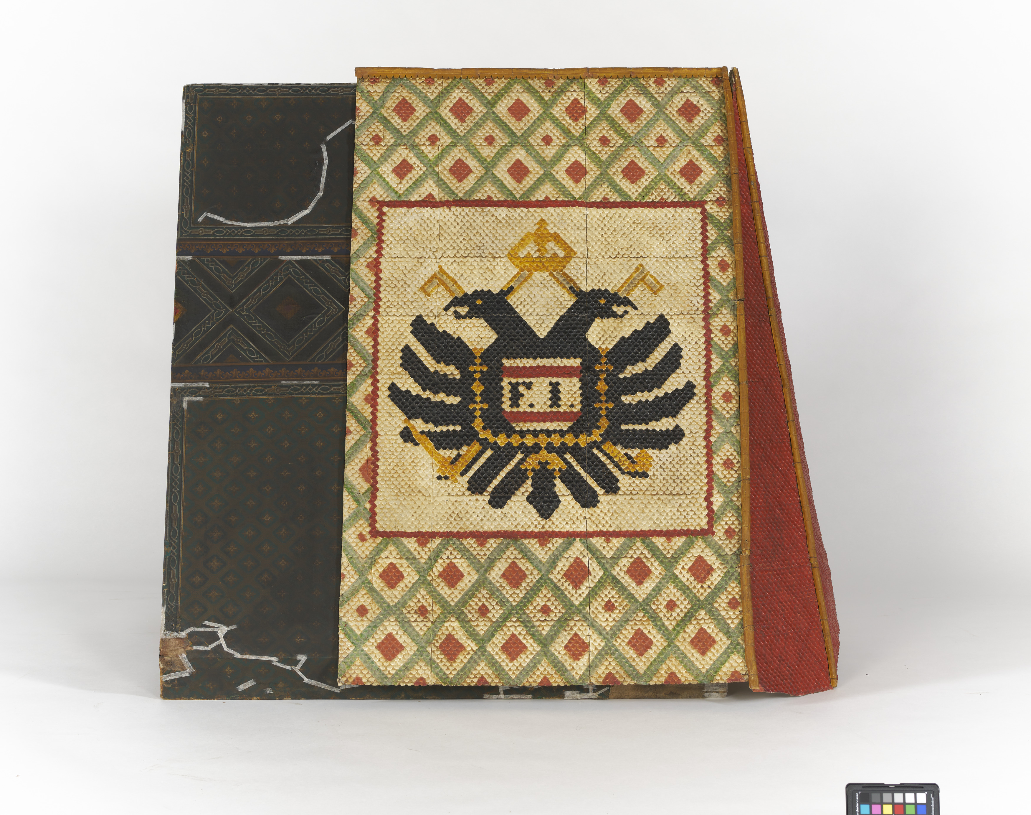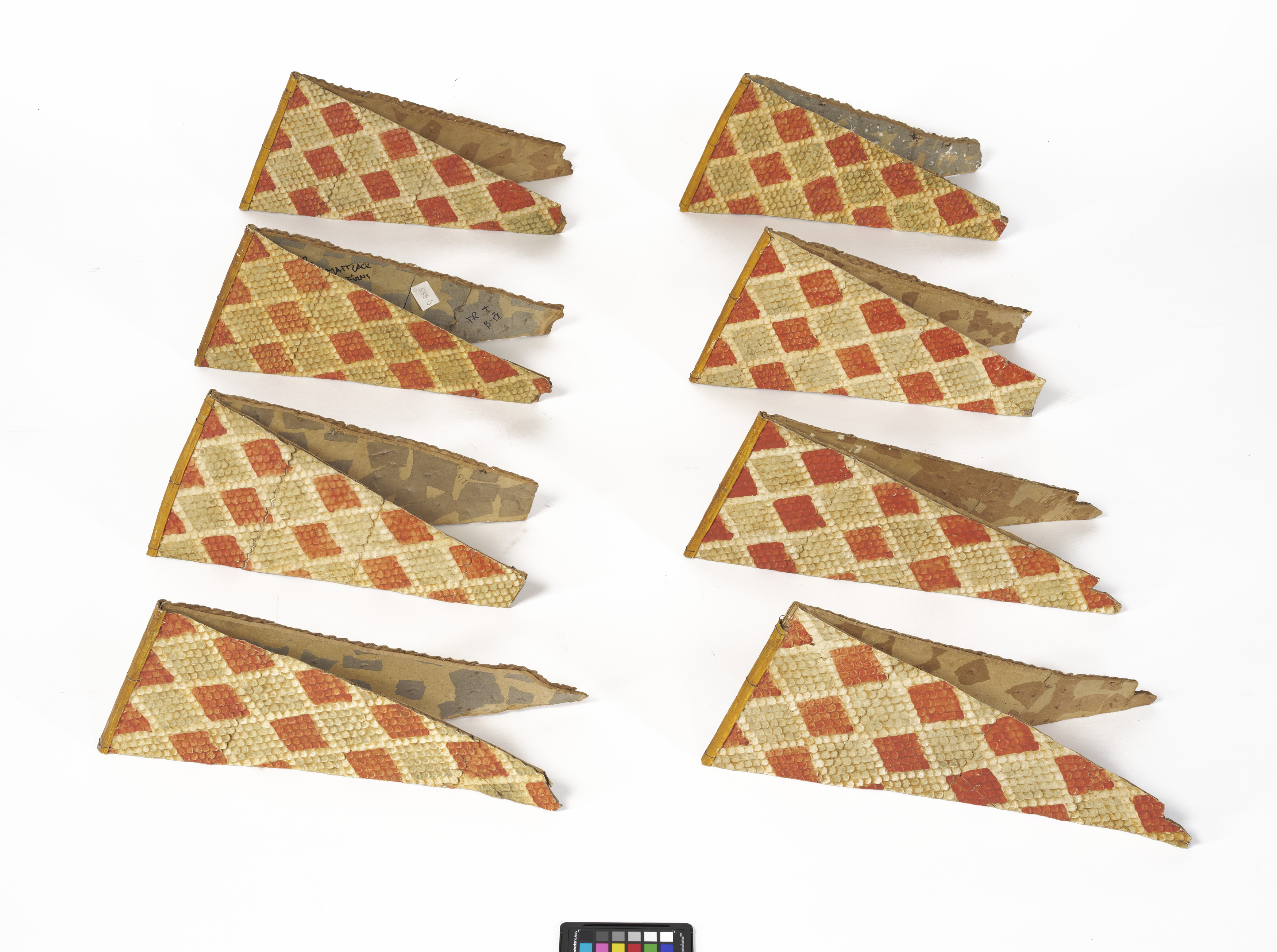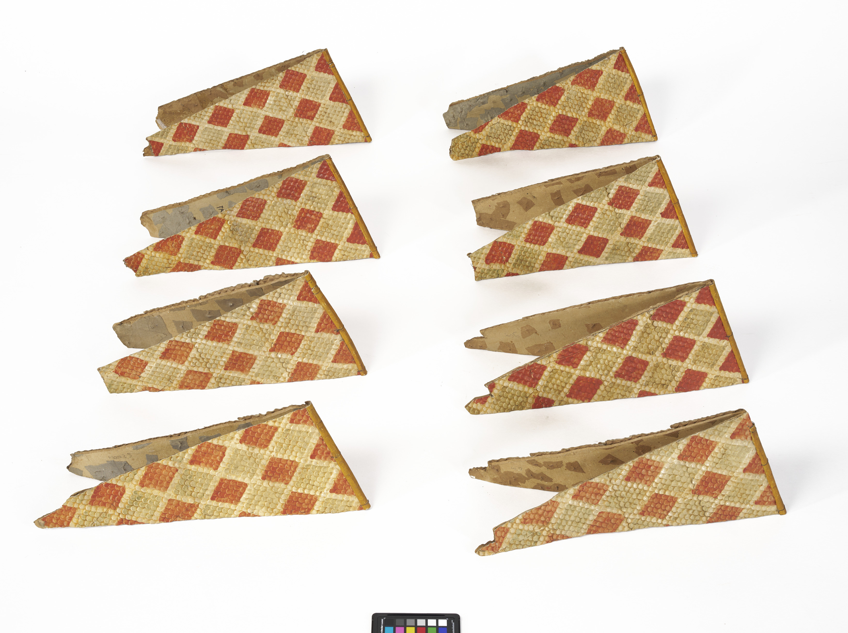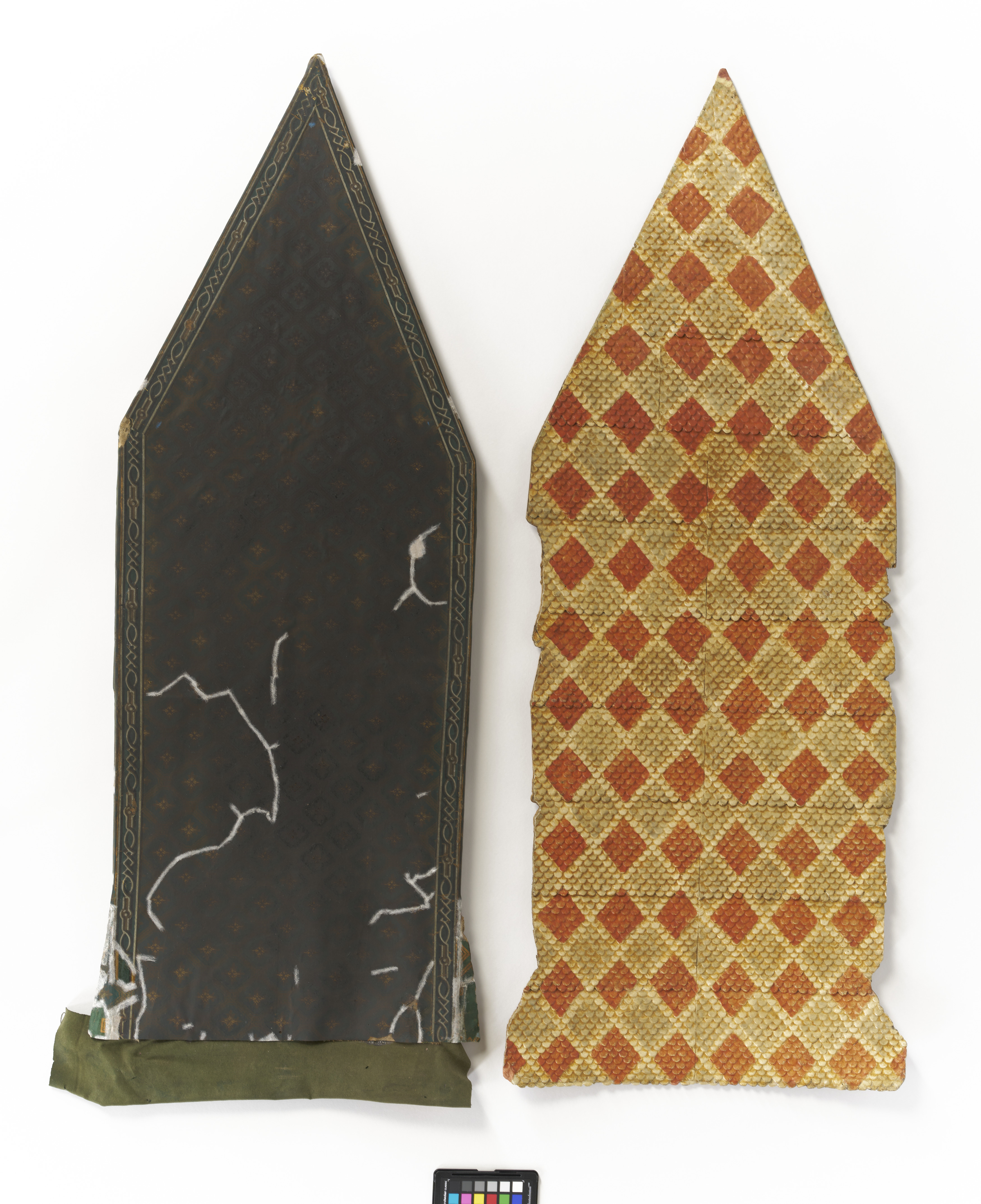 - Hergestellt 1860-1869, Dachteil über dem Chor doppellagig (unten: älteres orig. Muster von Schropp, oben: neues polychromiertes Muster von 1904) Patenschaft: Wiener Städtische Versicherung AG