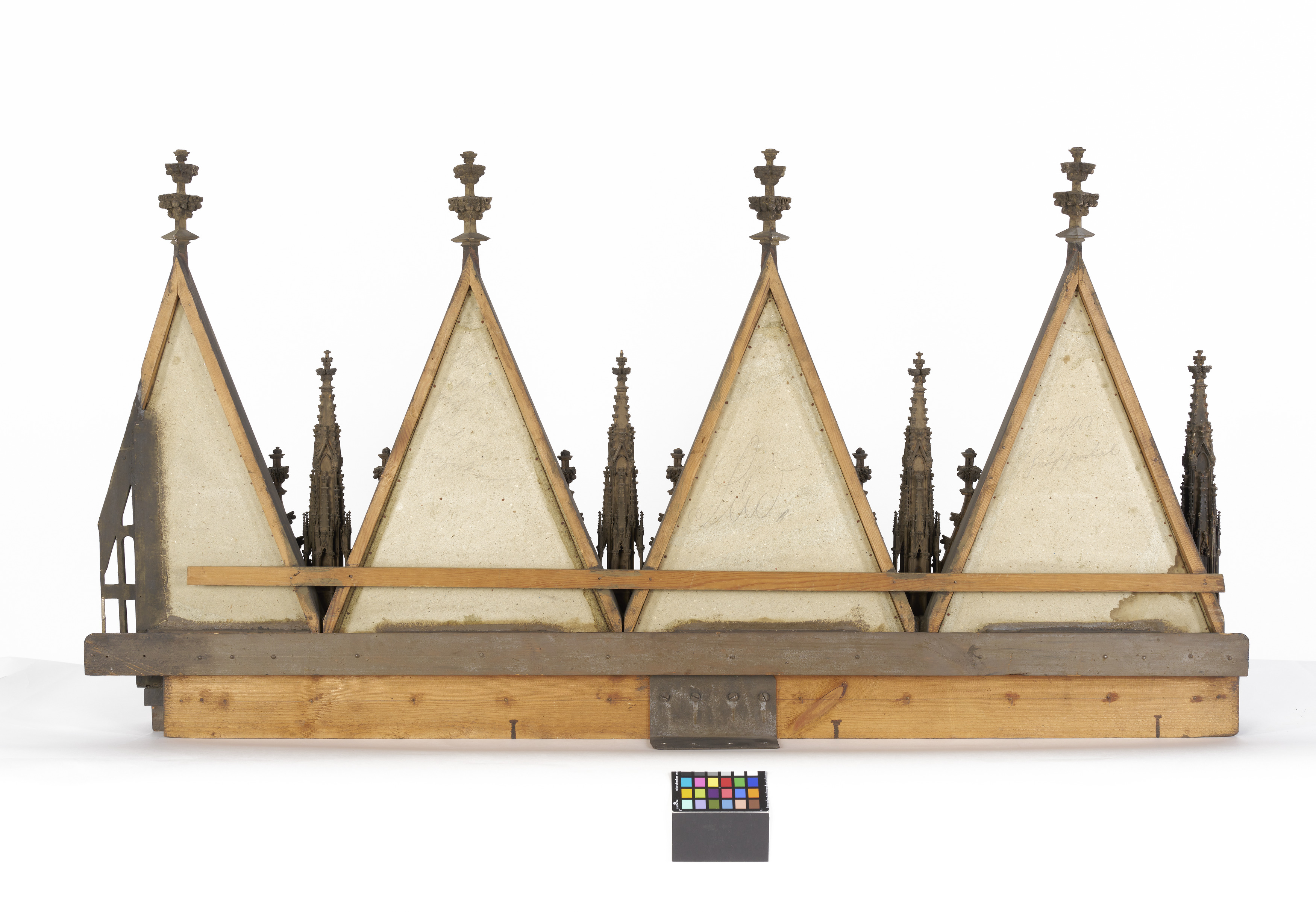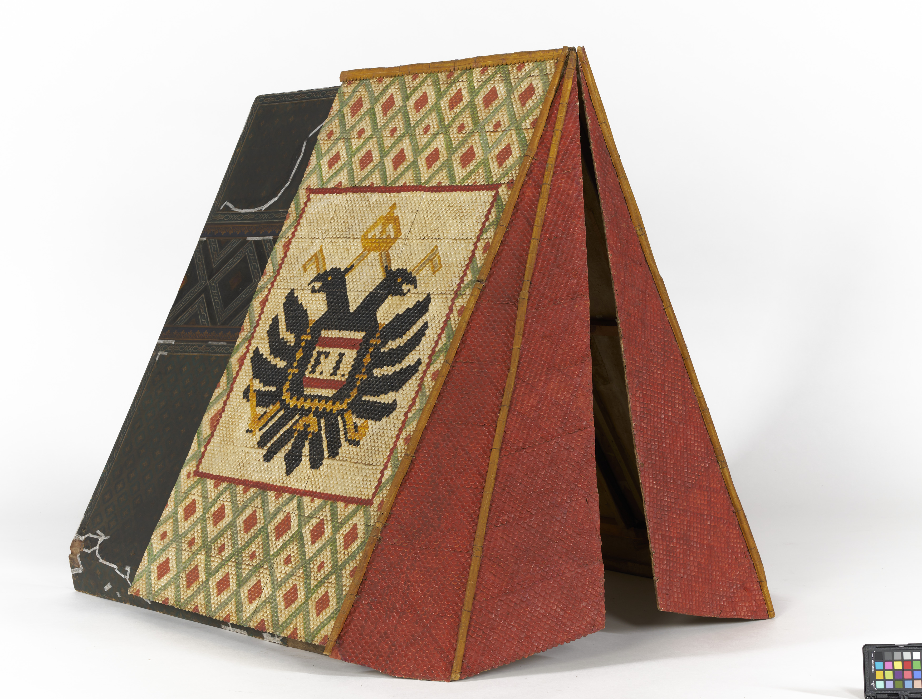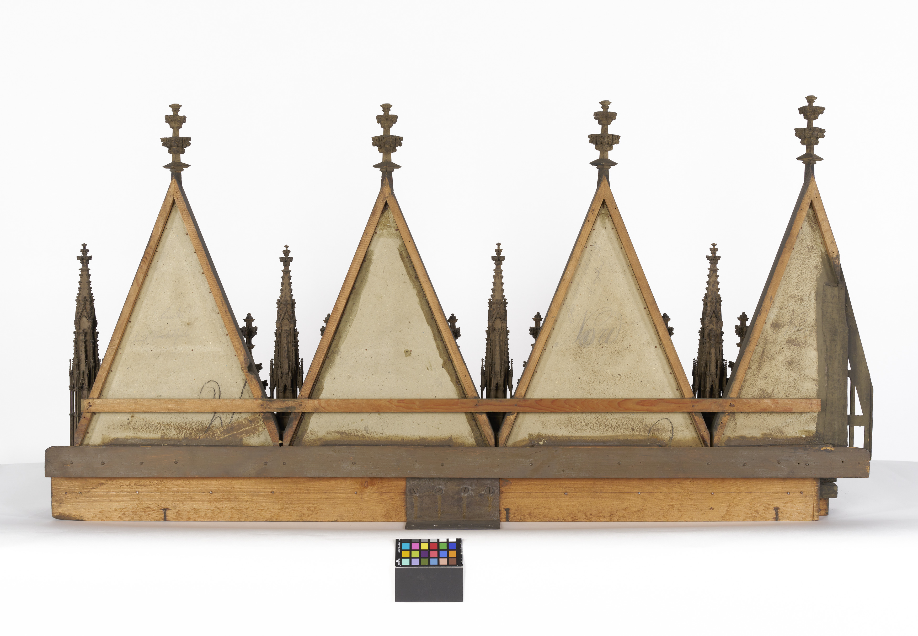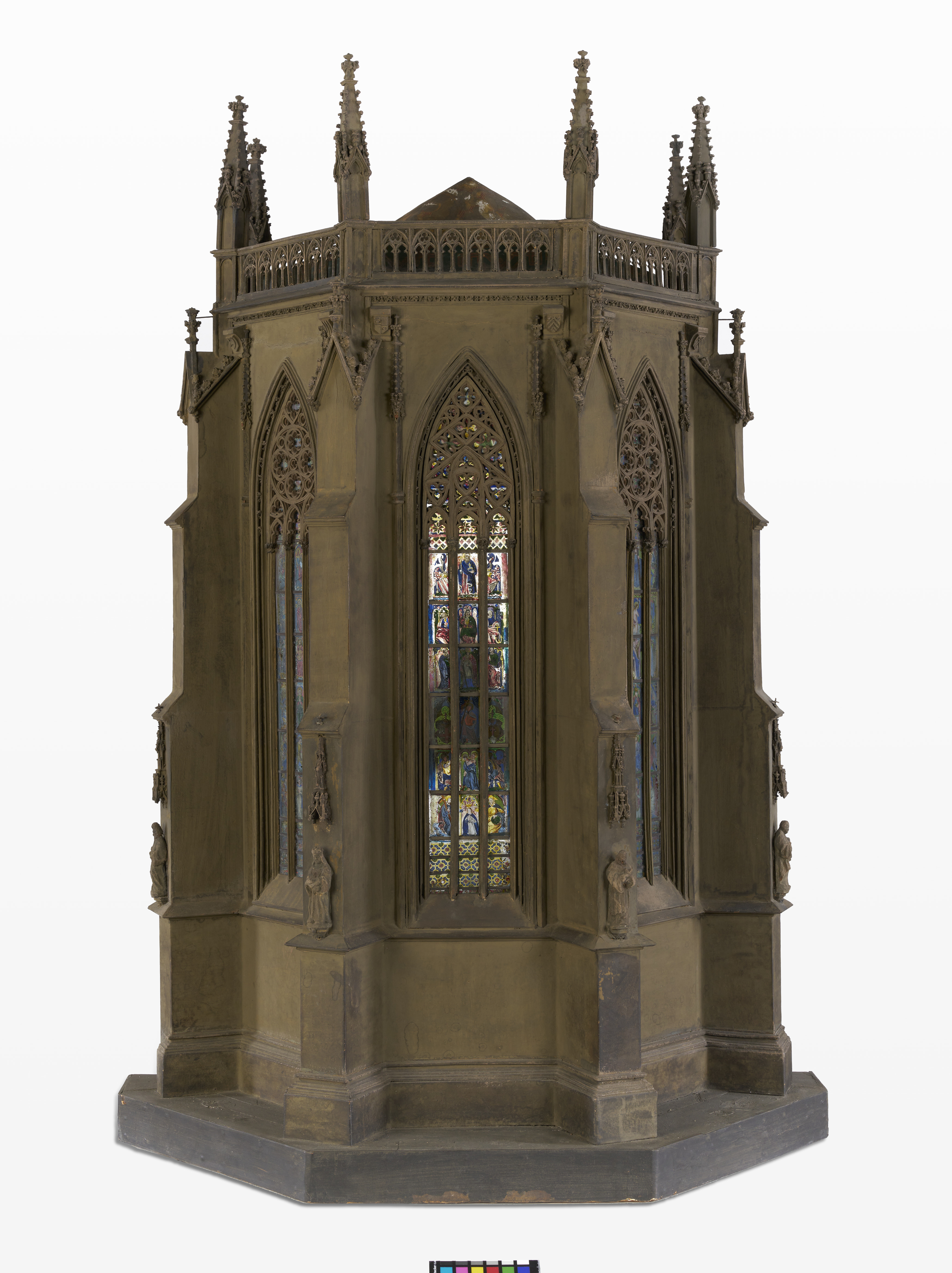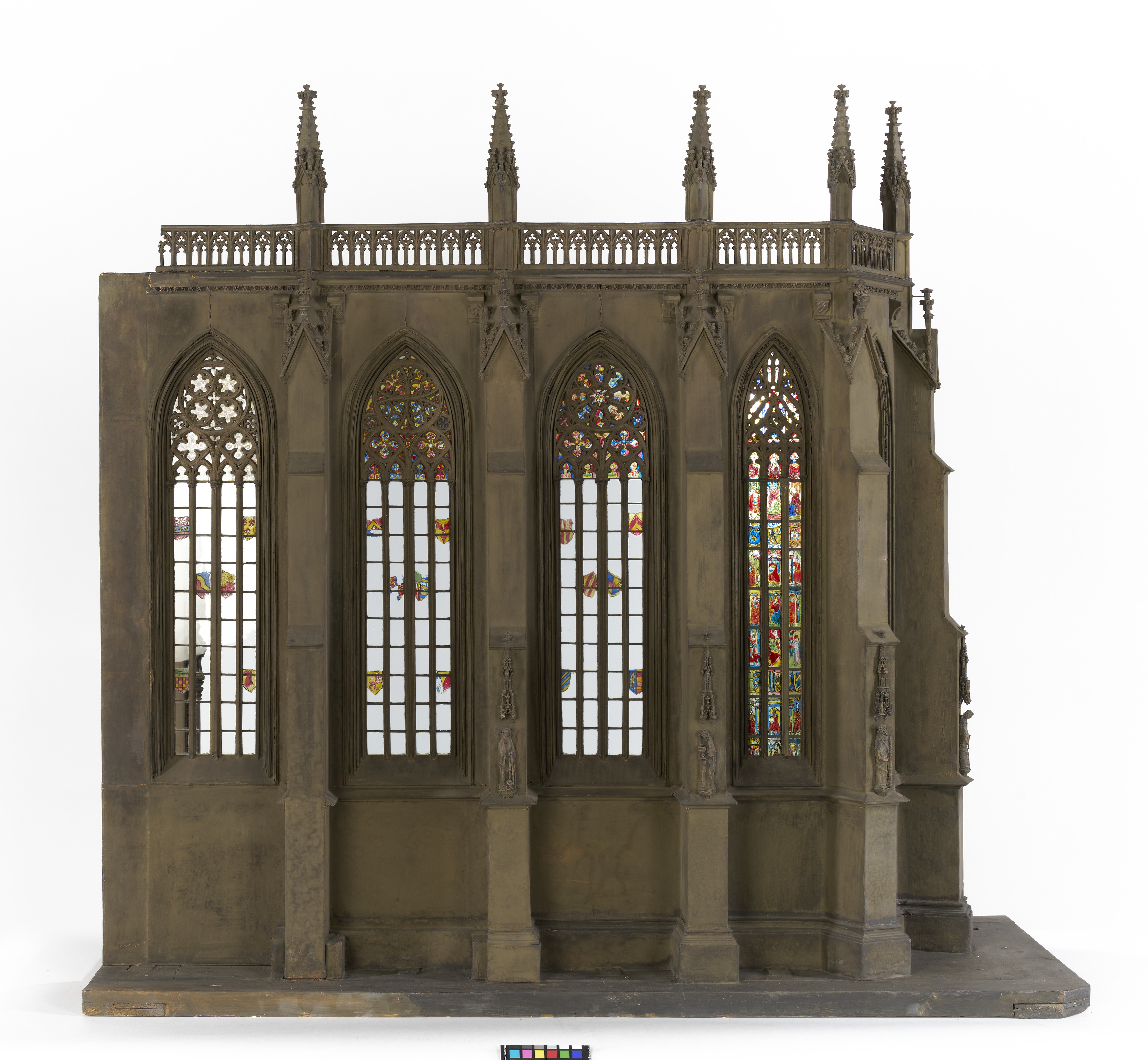 - Hergestellt 1860-1869, Dachteil über dem Chor doppellagig (unten: älteres orig. Muster von Schropp, oben: neues polychromiertes Muster von 1904) Patenschaft: Wiener Städtische Versicherung AG