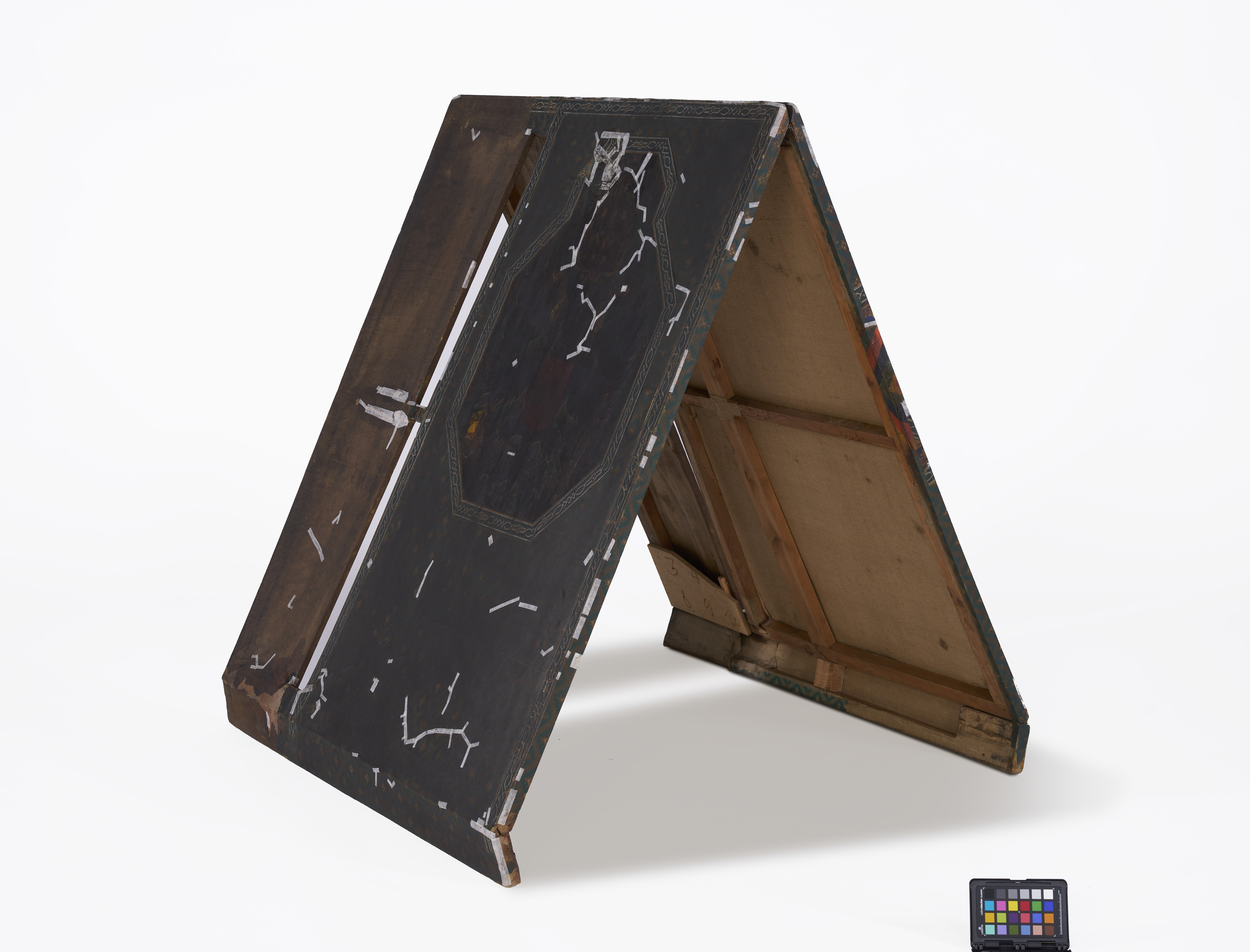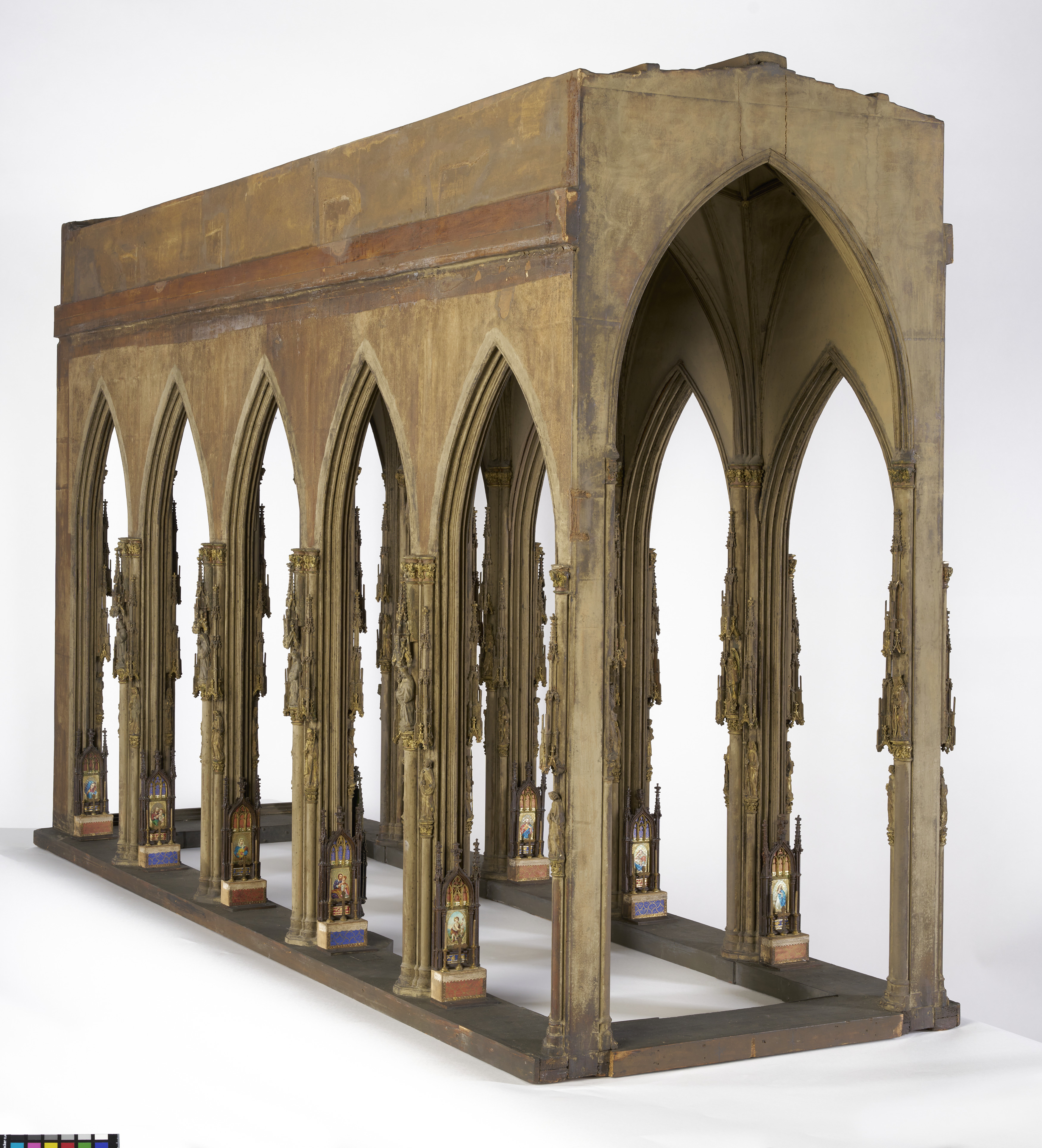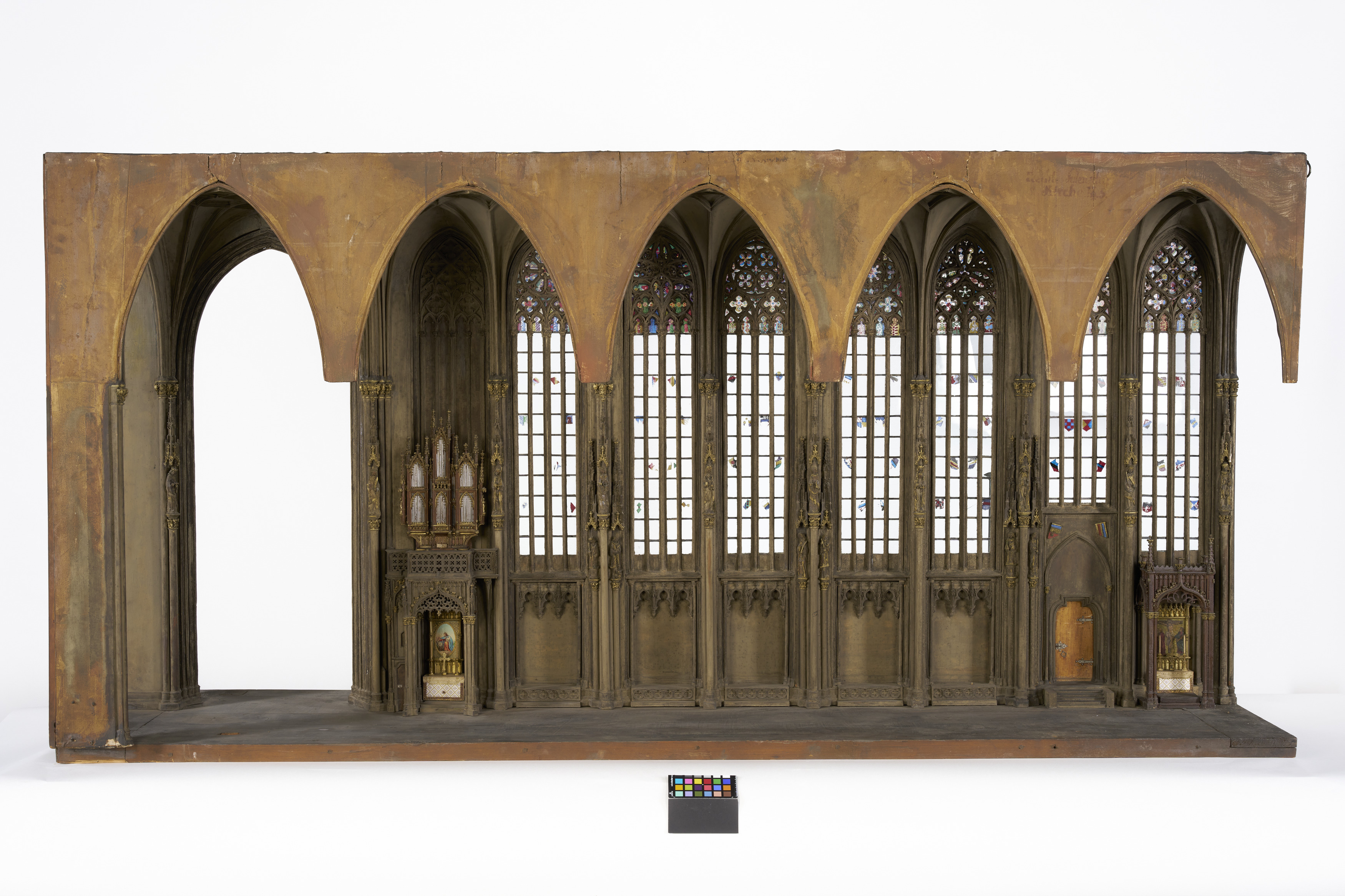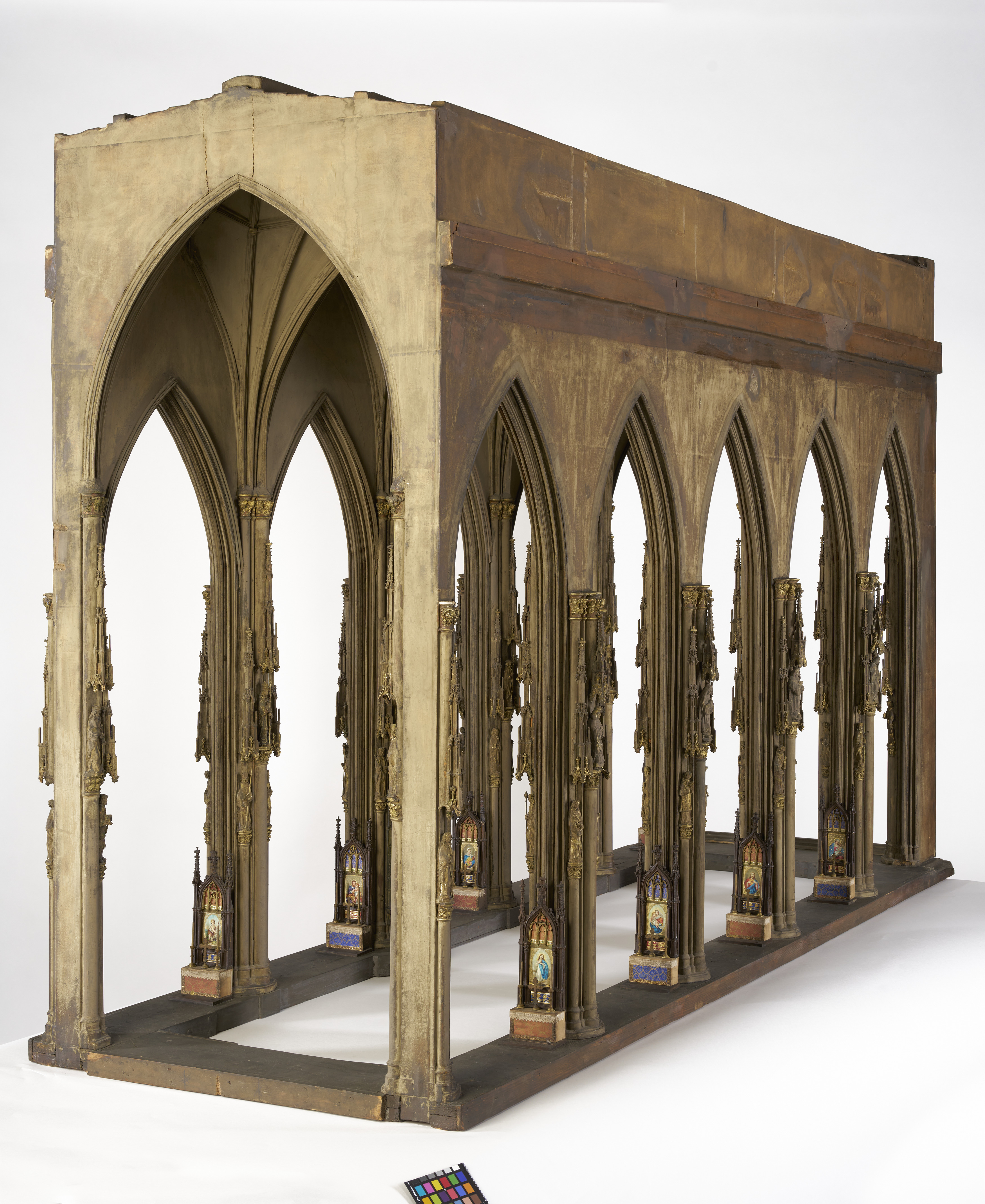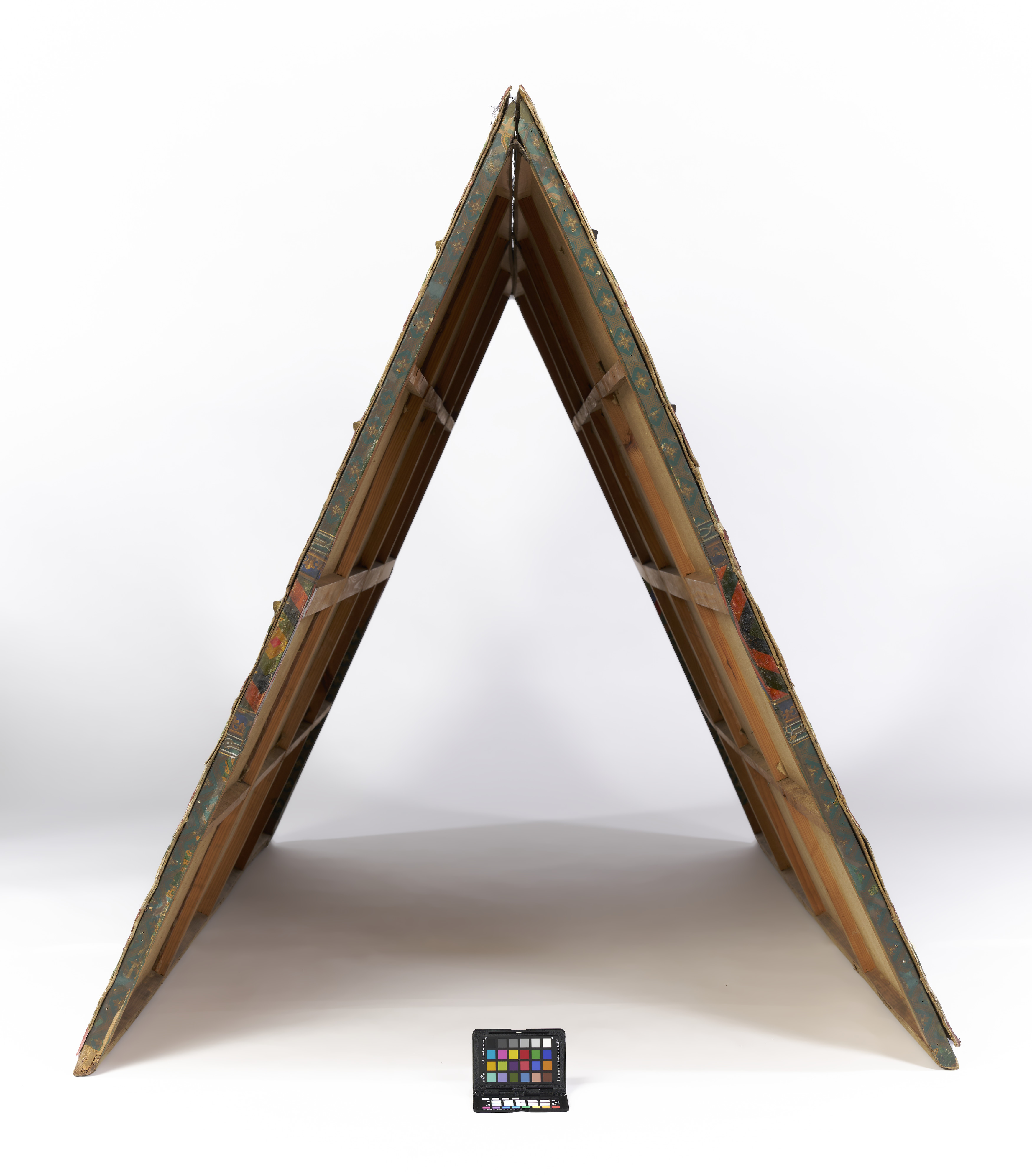 - Hergestellt 1860-1869, Dachteil über dem Chor doppellagig (unten: älteres orig. Muster von Schropp, oben: neues polychromiertes Muster von 1904) Patenschaft: Wiener Städtische Versicherung AG