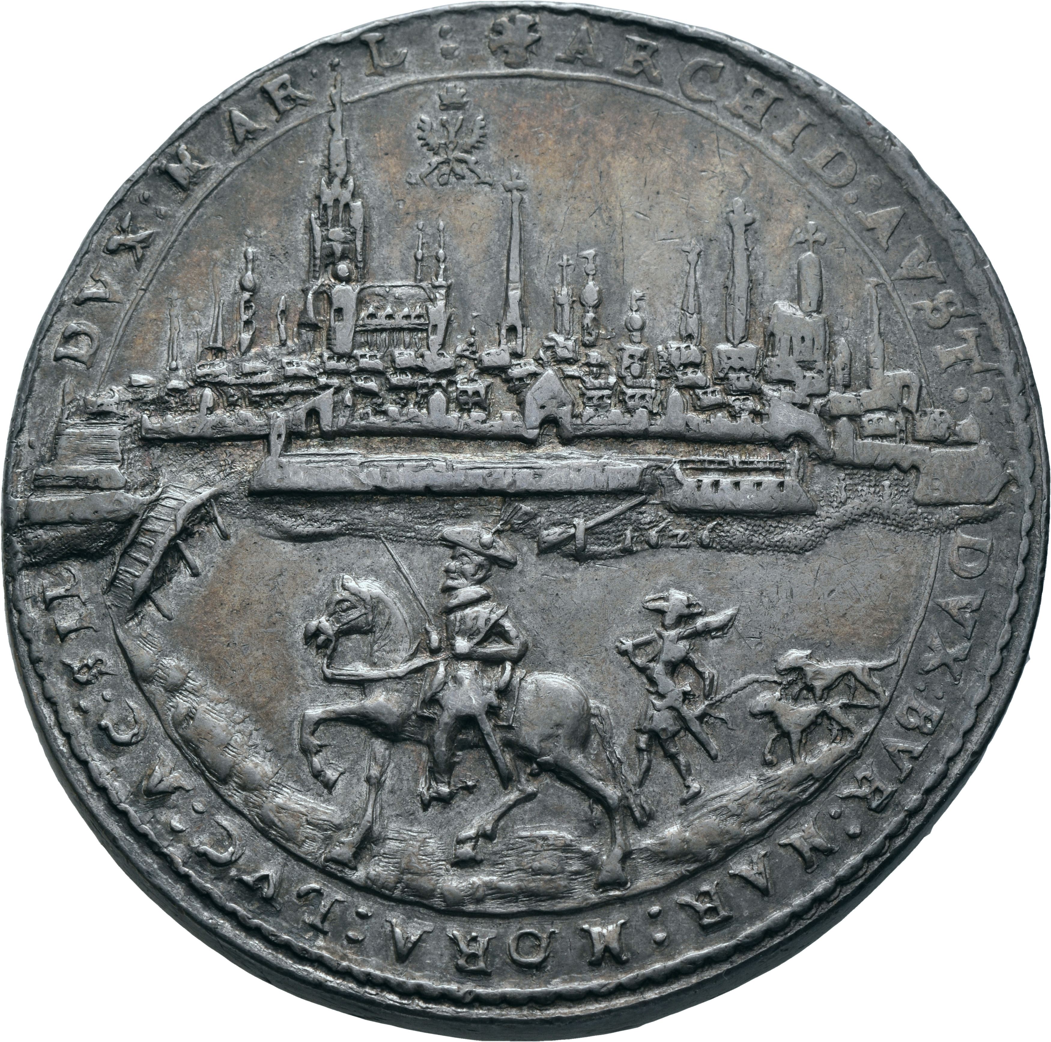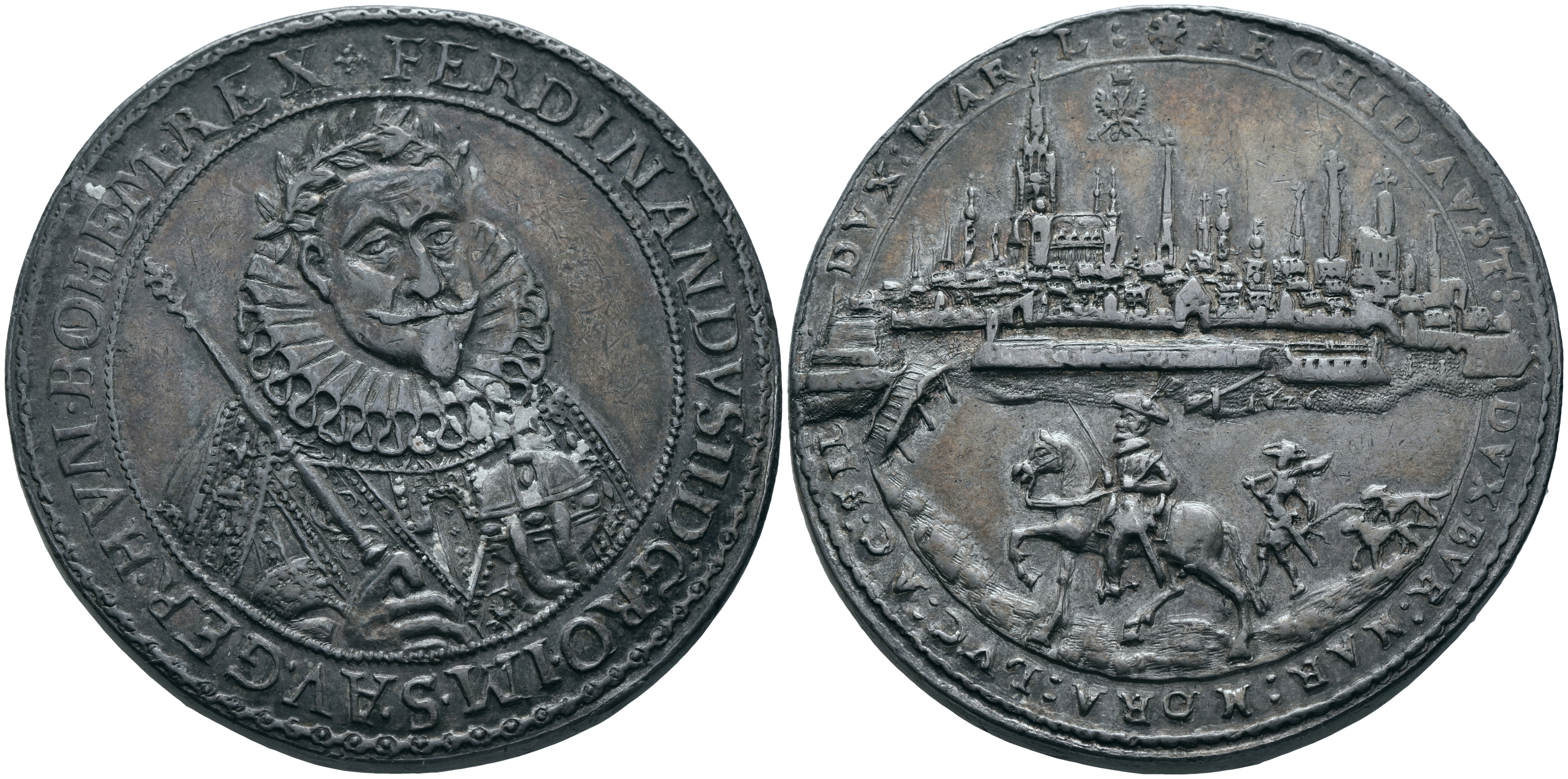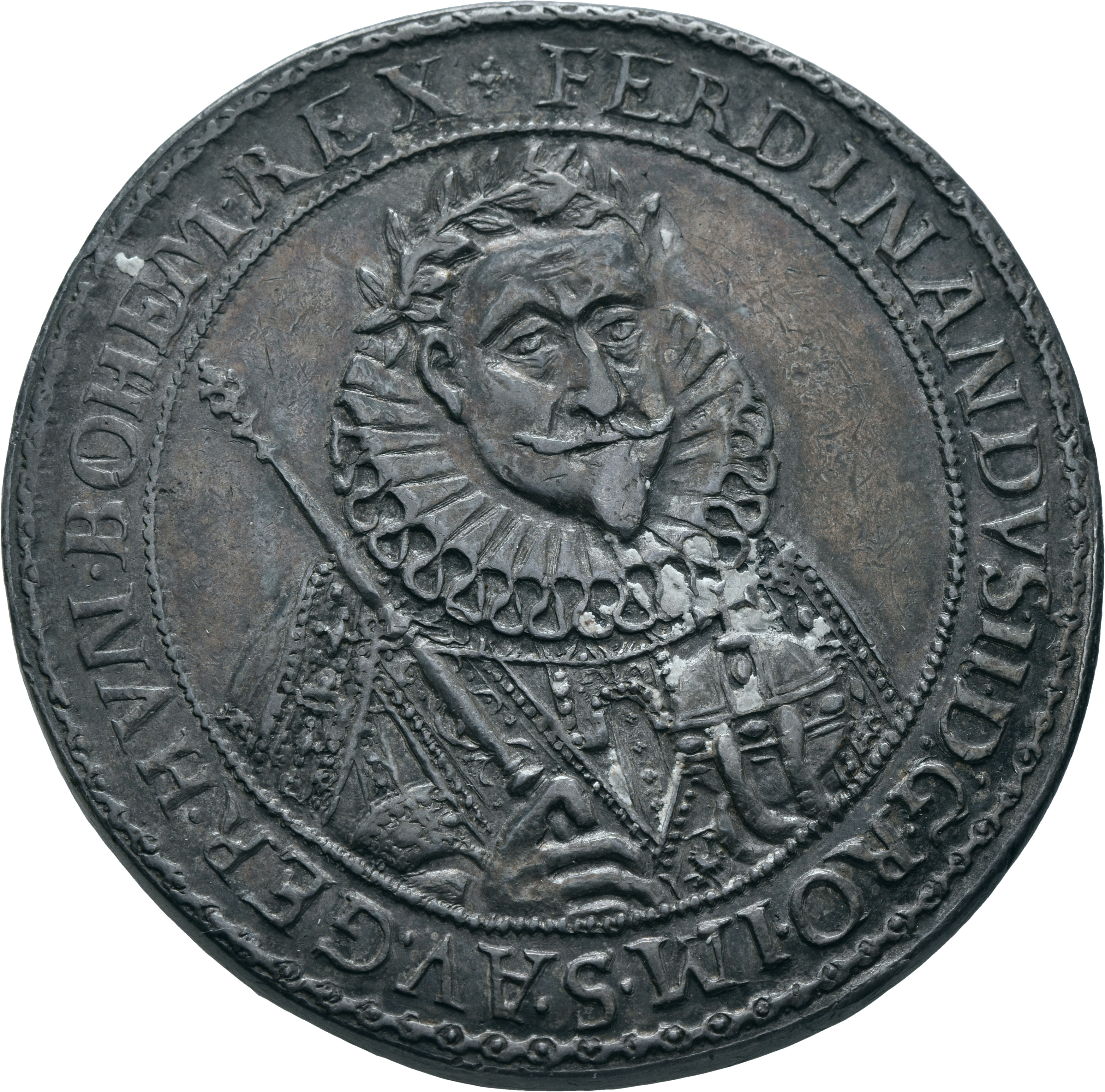 Name Rolle Ferdinand II. (Habsburg), Erzherzog von Österreich, röm.-dt. Kaiser (1578—1637) PrägeautoritätHans Riedel Münzmeister- Inventarnummer