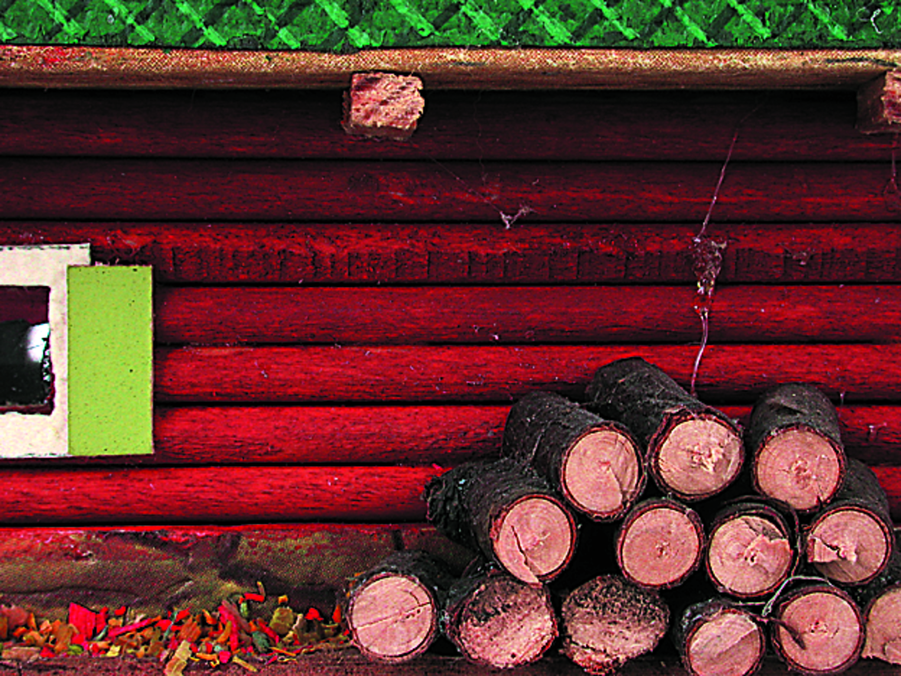 Anmerkung der Redaktion: Nicht von jedem Haus sind alle einzelnen verwendeten Materialien dokumentiert. Tatsächlich verbaute der Bastler auch Zigarettenschachteln, Spinnenpapier, Pappmaschee, Tapetenreste, Bunt- und Silberpapiere, Stoffe, Synthetikfasern, d-c-fix-Folien, Schriftproben, Zeitungsschnipsel und ausgewertete Illustrierte, Kartonagen, Holzabfälle aller Art, Uhu, Holzleim und Tapetenkleister.