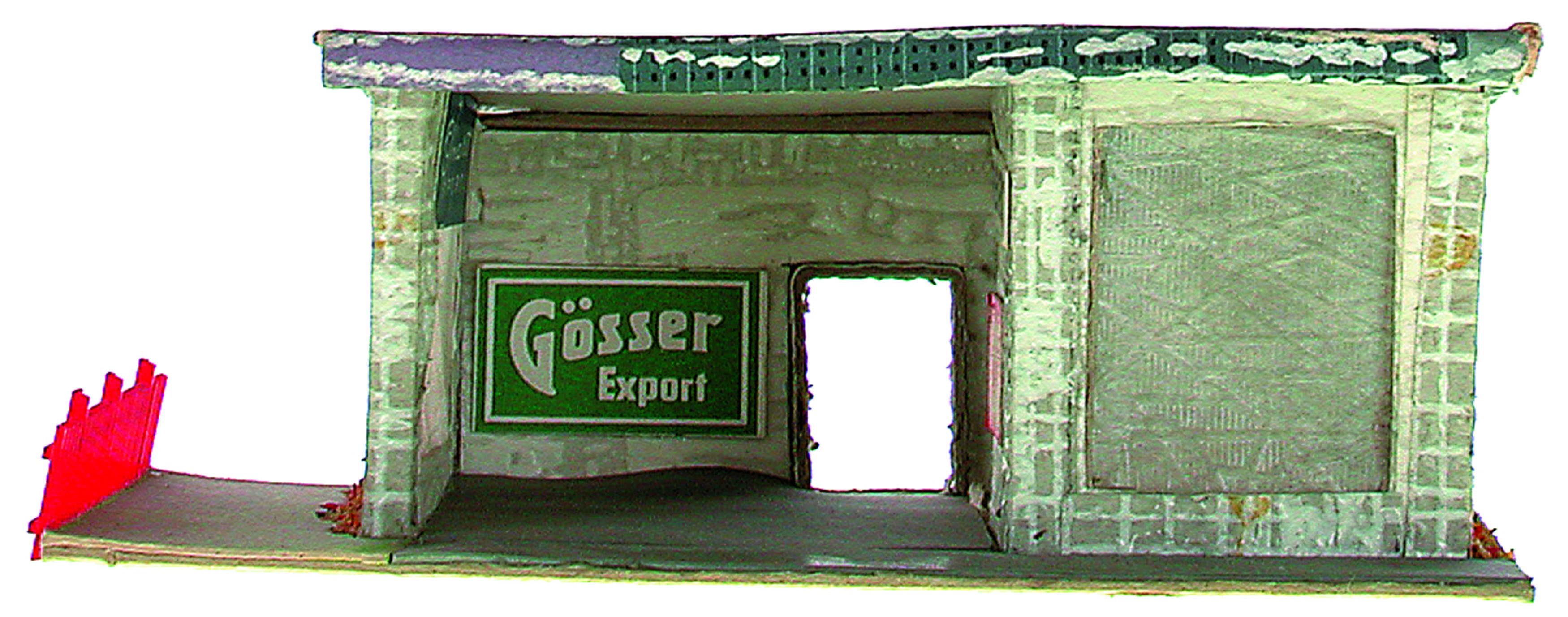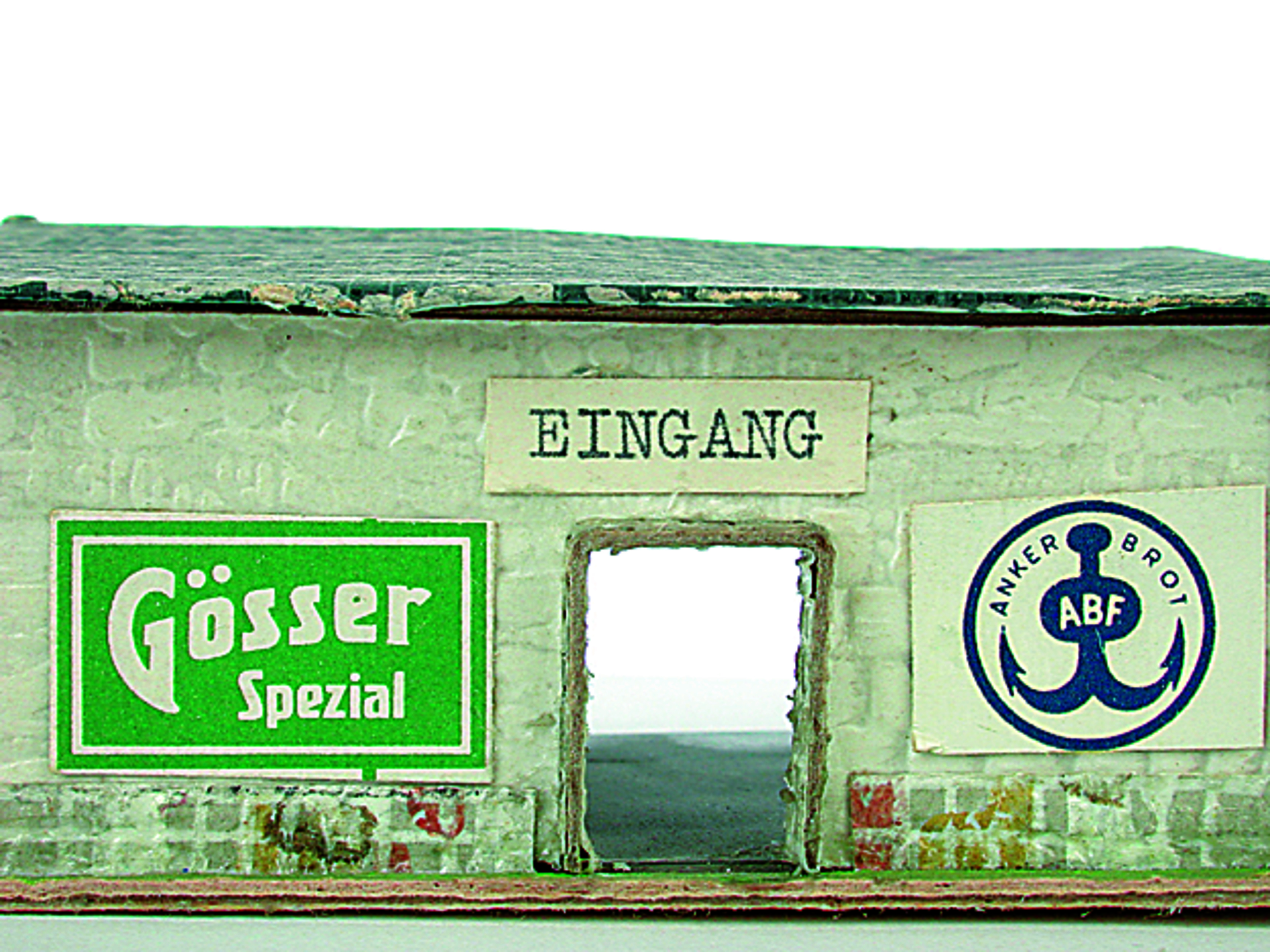 - “1993 stieß der Künstler Oliver Croy bei einem Wiener Altwarenhändler auf ein in Müllsäcken verpacktes Lebenswerk, bestehend aus tausenden Diapositiven und 387 Modellhäusern: Amtsgebäude und Schulen, Lagerhäuser und Gasthöfe, Kirchen und Tankstellen, Kaufhäuser und Pensionen – und zig Einfamilienhäuser. Es handelte sich um den Nachlass des 1992 verstorbenen Wiener Versicherungsbeamten Peter Fritz. Gemeinsam mit dem Architekturpublizisten Oliver Elser präsentierte Croy die Modellsammlung ab 2000 in zahlreichen Ausstellungen, in Architektur- und Volkskundemuseen ebenso wie im Kunstkontext, zum Beispiel bei der berlin biennale 2006 [Anmerkung der Redaktion: später auch bei der Biennale in Venedig 2013]. Parallel zu den öffentlichen Präsentationen wurde die „Fritzforschung“ initiiert, die sich in Vorträgen, Diskussionen und Texten niederschlug, mit Beiträgen von ExpertInnen aus Architektur, Kunst und Wissenschaft. - Es gibt keine Hinweise darauf, dass die Miniaturgebäude jemals dazu bestimmt waren, eine Modelleisenbahn zu schmücken. Zwar hat Fritz während seiner Sommerurlaube in Österreich eifrig fotografiert, doch seine Modellhäuser beschränken sich keineswegs auf die Nachbildung real existierender Bauten. Vielmehr handelt es sich um hybride Eigenkreationen, die von wenigen Grundtypen wie der modernistischen Kiste und dem alpenländischen Satteldachhaus ausgehen. Offenbar versuchte Fritz, typische Bauformen der österreichischen 50er- bis 70er-Jahre idealtypisch nachzuempfinden. „Er baut die Welt, wie sie ist, und gleichzeitig so, wie sie noch etwas interessanter sein könnte.“ (Croy/Elser) - Seine Welt ist also nicht die Idylle à la Faller, sondern die alltägliche Architektur mit all ihren Reklametafeln, kuriosen Zubauten und absurden Materialkombinationen. Croy und Elser nennen den besessenen Bastler einen „eigenwilligen Modernisten“ und schätzen ihn als „sensiblen Beobachter und begnadeten Entwerfer“. - 2008 wurden die 387 Häuser des Peter Fritz inklusive der Materialien der „Fritzforschung“ vom Wien Museum erworben – einerseits als Kunstwerk, andererseits als kultur- und alltagshistorisches Dokument. Denn die von Croy und Elser als „Sondermodelle“ bezeichneten Variationen baulicher Normalität belegen eindrucksvoll, wie sehr sich im Bauen (und Umbauen) der Nachkriegsepoche der Gegensatz zwischen Stadt und Land auflöste: Ganz Österreich wurde damals zur permanenten Peripherie – ein Prozess, der noch lange nicht an sein Ende gekommen ist.” - Wolfgang Kos, im Katalog zur Ausstellung „Fifty Fifty. Kunst im Dialog mit den 50er-Jahren“ (Wien Museum Karlsplatz), erschienen im Verlag für moderne Kunst Nürnberg, 2009 - Anmerkung der Redaktion: Nicht von jedem Haus sind alle einzelnen verwendeten Materialien dokumentiert. Tatsächlich verbaute der Bastler auch Zigarettenschachteln, Spinnenpapier, Pappmaschee, Tapetenreste, Bunt- und Silberpapiere, Stoffe, Synthetikfasern, d-c-fix-Folien, Schriftproben, Zeitungsschnipsel und ausgewertete Illustrierte, Kartonagen, Holzabfälle aller Art, Uhu, Holzleim und Tapetenkleister.