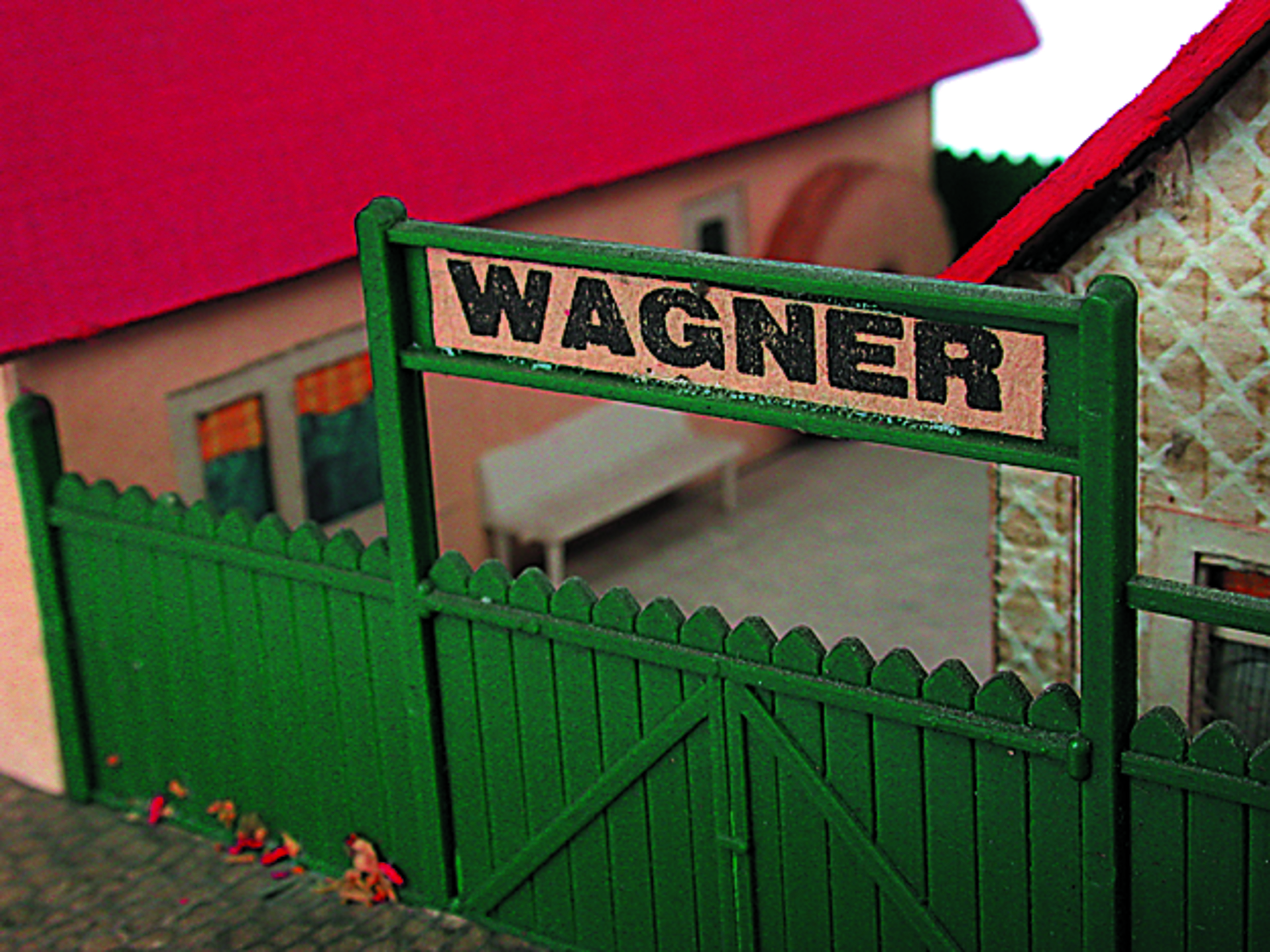 Anmerkung der Redaktion: Nicht von jedem Haus sind alle einzelnen verwendeten Materialien dokumentiert. Tatsächlich verbaute der Bastler auch Zigarettenschachteln, Spinnenpapier, Pappmaschee, Tapetenreste, Bunt- und Silberpapiere, Stoffe, Synthetikfasern, d-c-fix-Folien, Schriftproben, Zeitungsschnipsel und ausgewertete Illustrierte, Kartonagen, Holzabfälle aller Art, Uhu, Holzleim und Tapetenkleister.