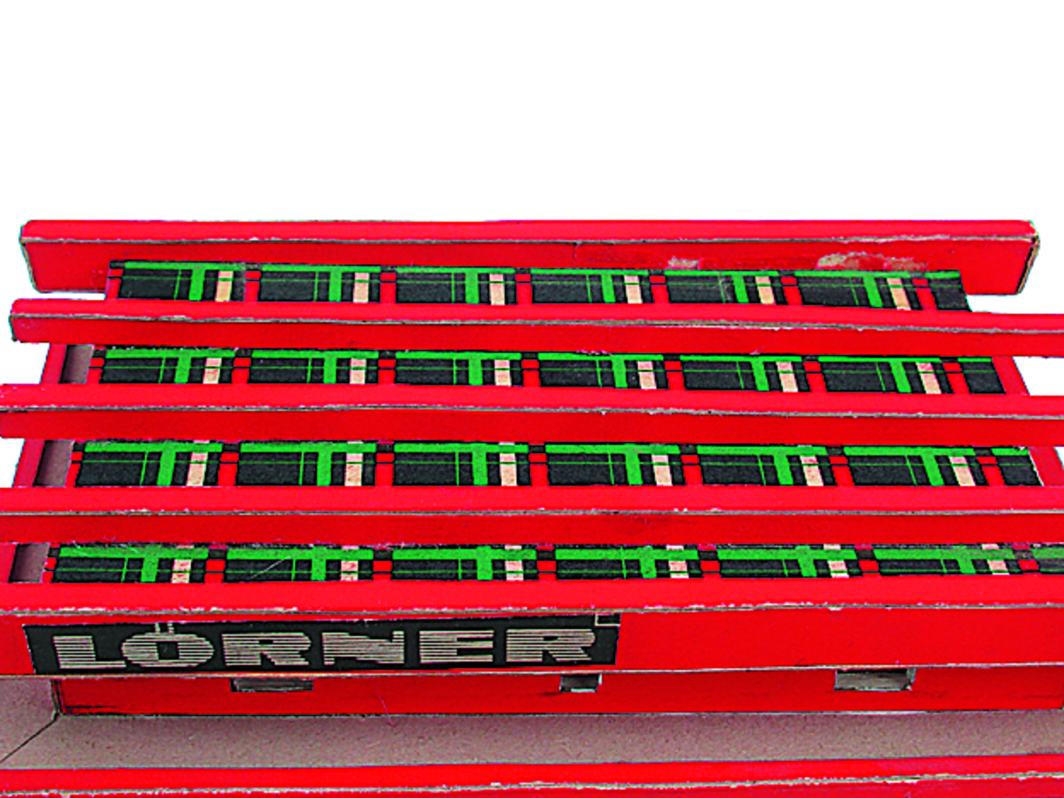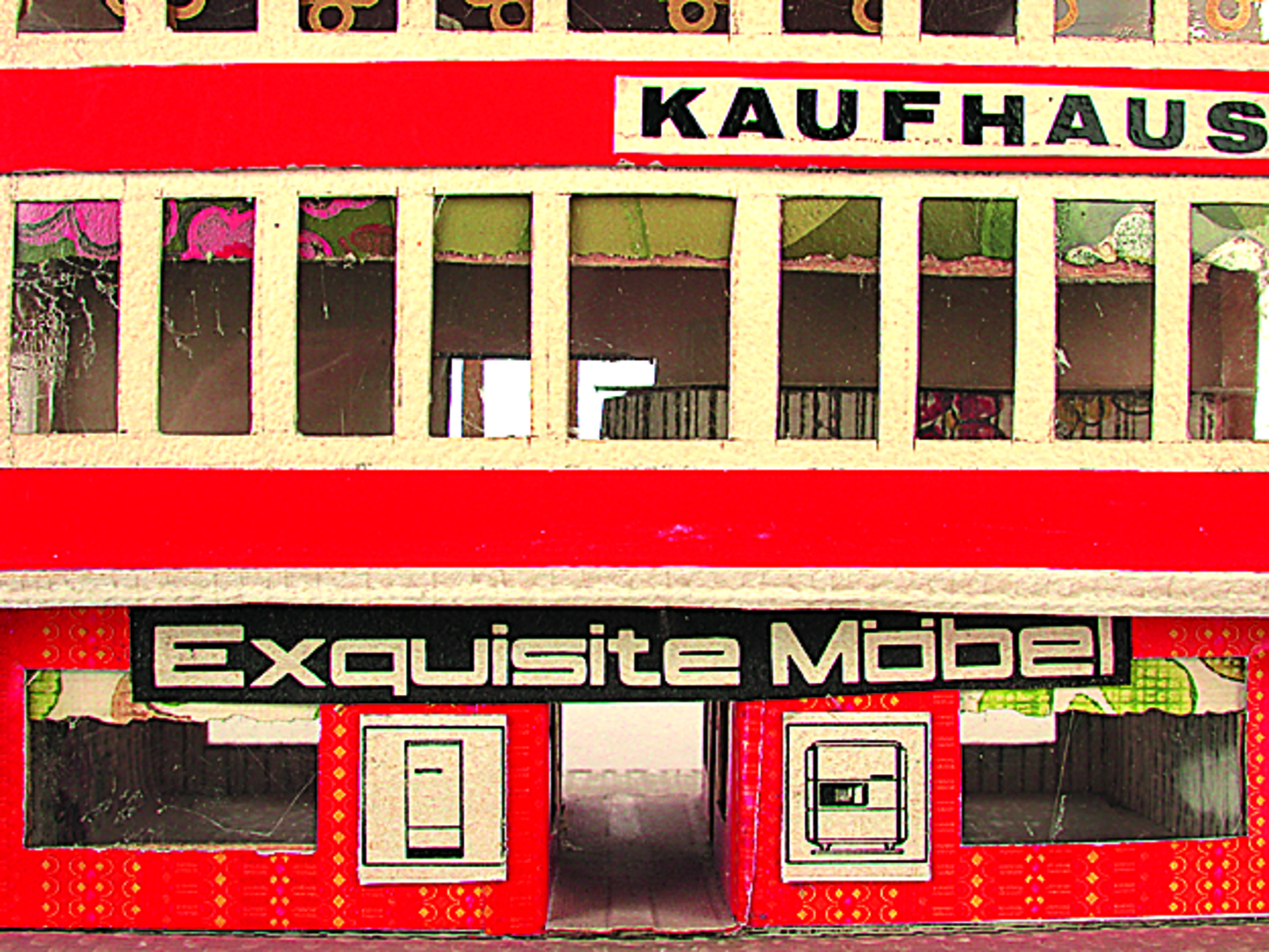 Anmerkung der Redaktion: Nicht von jedem Haus sind alle einzelnen verwendeten Materialien dokumentiert. Tatsächlich verbaute der Bastler auch Zigarettenschachteln, Spinnenpapier, Pappmaschee, Tapetenreste, Bunt- und Silberpapiere, Stoffe, Synthetikfasern, d-c-fix-Folien, Schriftproben, Zeitungsschnipsel und ausgewertete Illustrierte, Kartonagen, Holzabfälle aller Art, Uhu, Holzleim und Tapetenkleister.