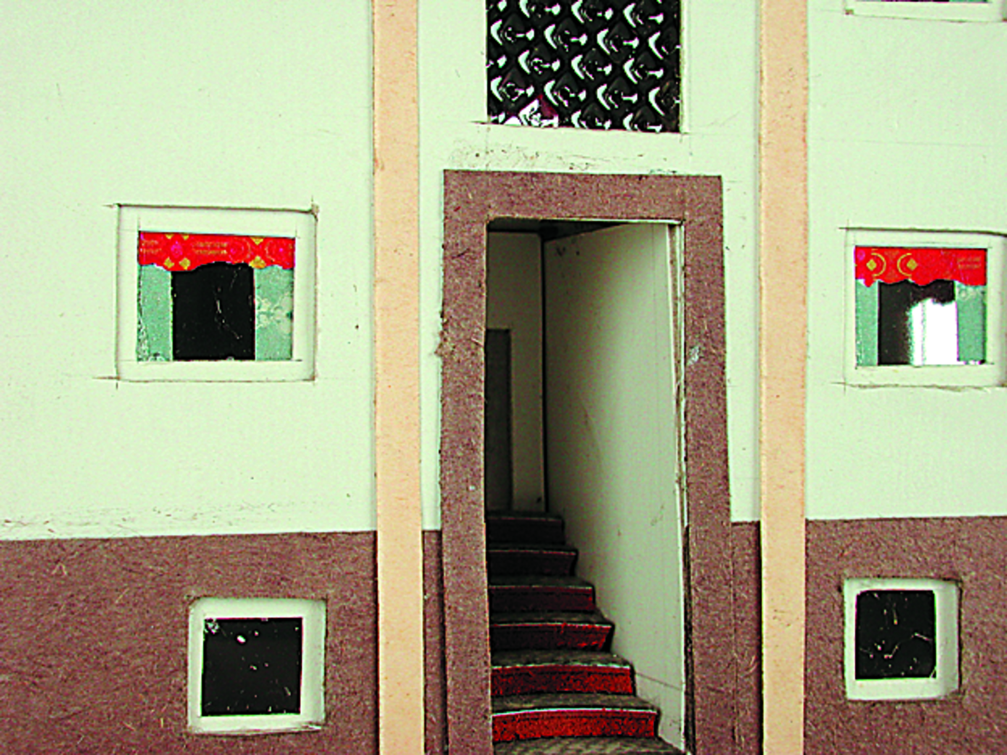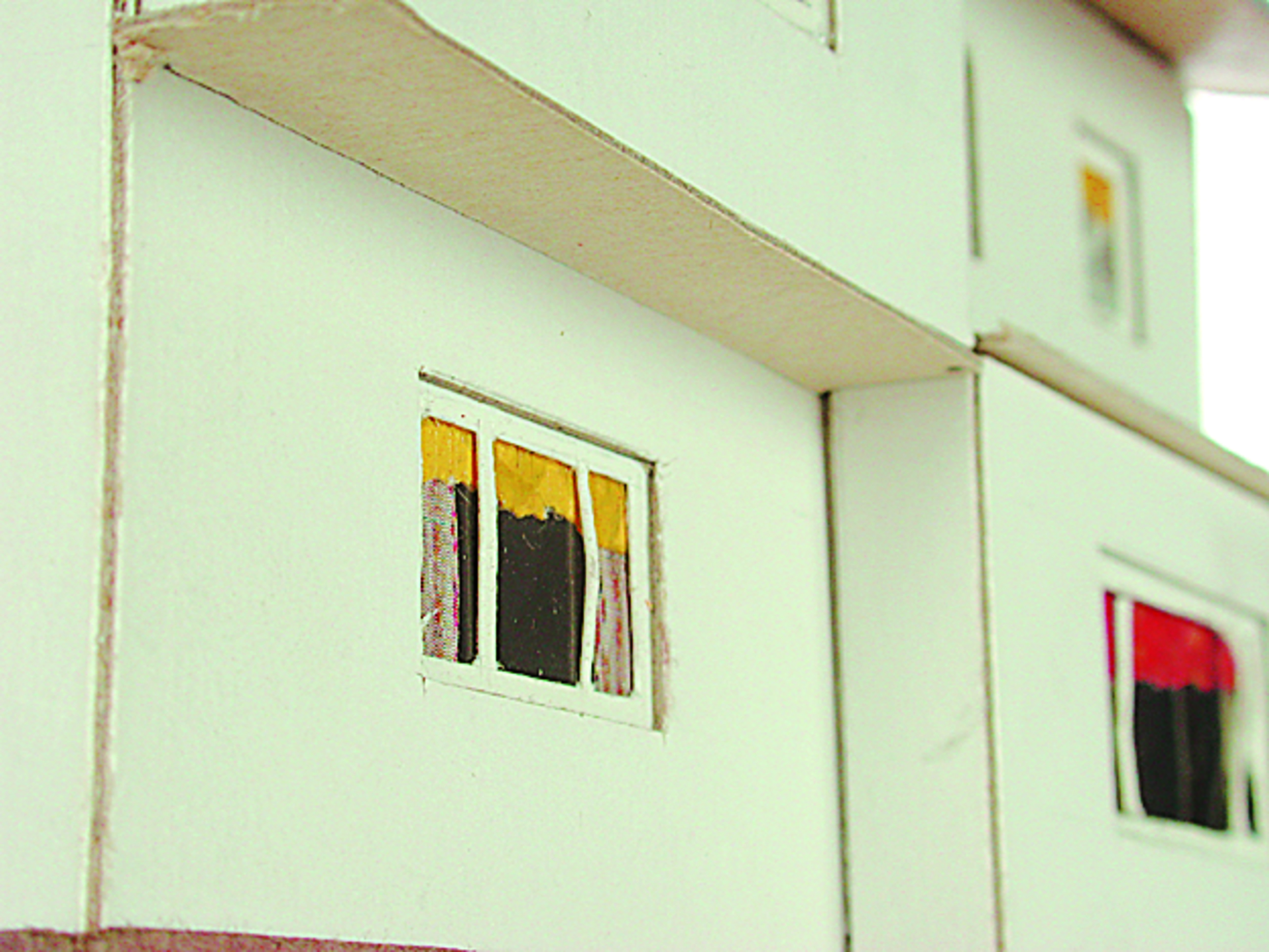 Anmerkung der Redaktion: Nicht von jedem Haus sind alle einzelnen verwendeten Materialien dokumentiert. Tatsächlich verbaute der Bastler auch Zigarettenschachteln, Spinnenpapier, Pappmaschee, Tapetenreste, Bunt- und Silberpapiere, Stoffe, Synthetikfasern, d-c-fix-Folien, Schriftproben, Zeitungsschnipsel und ausgewertete Illustrierte, Kartonagen, Holzabfälle aller Art, Uhu, Holzleim und Tapetenkleister.