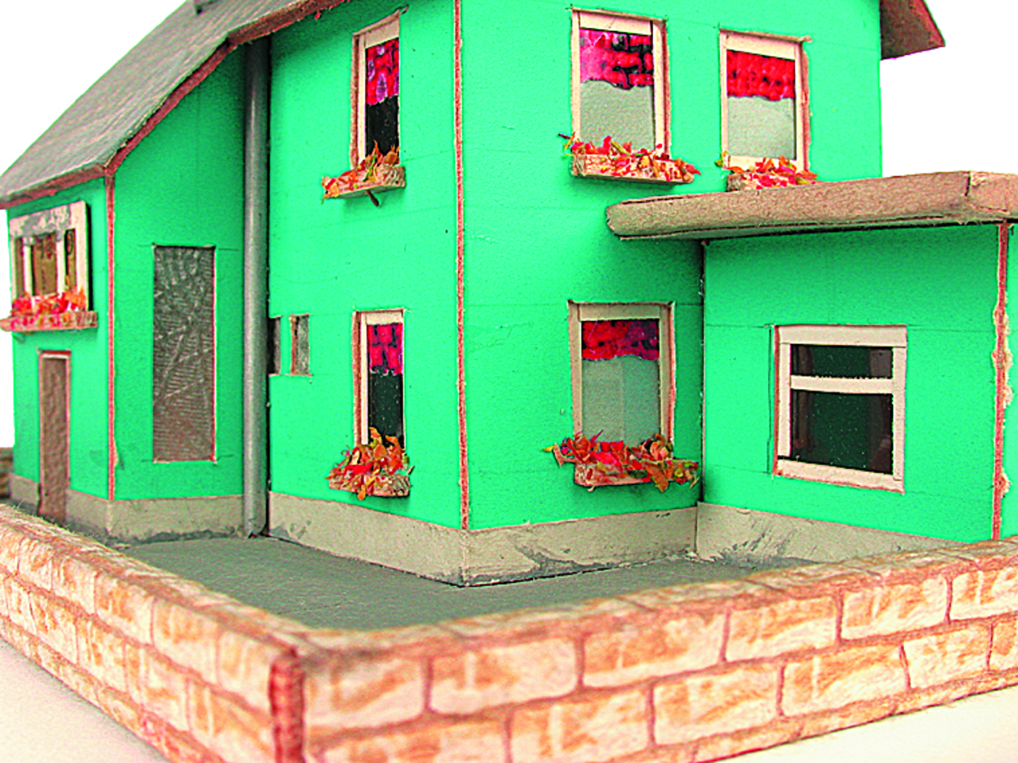 - “1993 stieß der Künstler Oliver Croy bei einem Wiener Altwarenhändler auf ein in Müllsäcken verpacktes Lebenswerk, bestehend aus tausenden Diapositiven und 387 Modellhäusern: Amtsgebäude und Schulen, Lagerhäuser und Gasthöfe, Kirchen und Tankstellen, Kaufhäuser und Pensionen – und zig Einfamilienhäuser. Es handelte sich um den Nachlass des 1992 verstorbenen Wiener Versicherungsbeamten Peter Fritz. Gemeinsam mit dem Architekturpublizisten Oliver Elser präsentierte Croy die Modellsammlung ab 2000 in zahlreichen Ausstellungen, in Architektur- und Volkskundemuseen ebenso wie im Kunstkontext, zum Beispiel bei der berlin biennale 2006 [Anmerkung der Redaktion: später auch bei der Biennale in Venedig 2013]. Parallel zu den öffentlichen Präsentationen wurde die „Fritzforschung“ initiiert, die sich in Vorträgen, Diskussionen und Texten niederschlug, mit Beiträgen von ExpertInnen aus Architektur, Kunst und Wissenschaft. - Es gibt keine Hinweise darauf, dass die Miniaturgebäude jemals dazu bestimmt waren, eine Modelleisenbahn zu schmücken. Zwar hat Fritz während seiner Sommerurlaube in Österreich eifrig fotografiert, doch seine Modellhäuser beschränken sich keineswegs auf die Nachbildung real existierender Bauten. Vielmehr handelt es sich um hybride Eigenkreationen, die von wenigen Grundtypen wie der modernistischen Kiste und dem alpenländischen Satteldachhaus ausgehen. Offenbar versuchte Fritz, typische Bauformen der österreichischen 50er- bis 70er-Jahre idealtypisch nachzuempfinden. „Er baut die Welt, wie sie ist, und gleichzeitig so, wie sie noch etwas interessanter sein könnte.“ (Croy/Elser) - Seine Welt ist also nicht die Idylle à la Faller, sondern die alltägliche Architektur mit all ihren Reklametafeln, kuriosen Zubauten und absurden Materialkombinationen. Croy und Elser nennen den besessenen Bastler einen „eigenwilligen Modernisten“ und schätzen ihn als „sensiblen Beobachter und begnadeten Entwerfer“. - 2008 wurden die 387 Häuser des Peter Fritz inklusive der Materialien der „Fritzforschung“ vom Wien Museum erworben – einerseits als Kunstwerk, andererseits als kultur- und alltagshistorisches Dokument. Denn die von Croy und Elser als „Sondermodelle“ bezeichneten Variationen baulicher Normalität belegen eindrucksvoll, wie sehr sich im Bauen (und Umbauen) der Nachkriegsepoche der Gegensatz zwischen Stadt und Land auflöste: Ganz Österreich wurde damals zur permanenten Peripherie – ein Prozess, der noch lange nicht an sein Ende gekommen ist.” - Wolfgang Kos, im Katalog zur Ausstellung „Fifty Fifty. Kunst im Dialog mit den 50er-Jahren“ (Wien Museum Karlsplatz), erschienen im Verlag für moderne Kunst Nürnberg, 2009 - Anmerkung der Redaktion: Nicht von jedem Haus sind alle einzelnen verwendeten Materialien dokumentiert. Tatsächlich verbaute der Bastler auch Zigarettenschachteln, Spinnenpapier, Pappmaschee, Tapetenreste, Bunt- und Silberpapiere, Stoffe, Synthetikfasern, d-c-fix-Folien, Schriftproben, Zeitungsschnipsel und ausgewertete Illustrierte, Kartonagen, Holzabfälle aller Art, Uhu, Holzleim und Tapetenkleister.