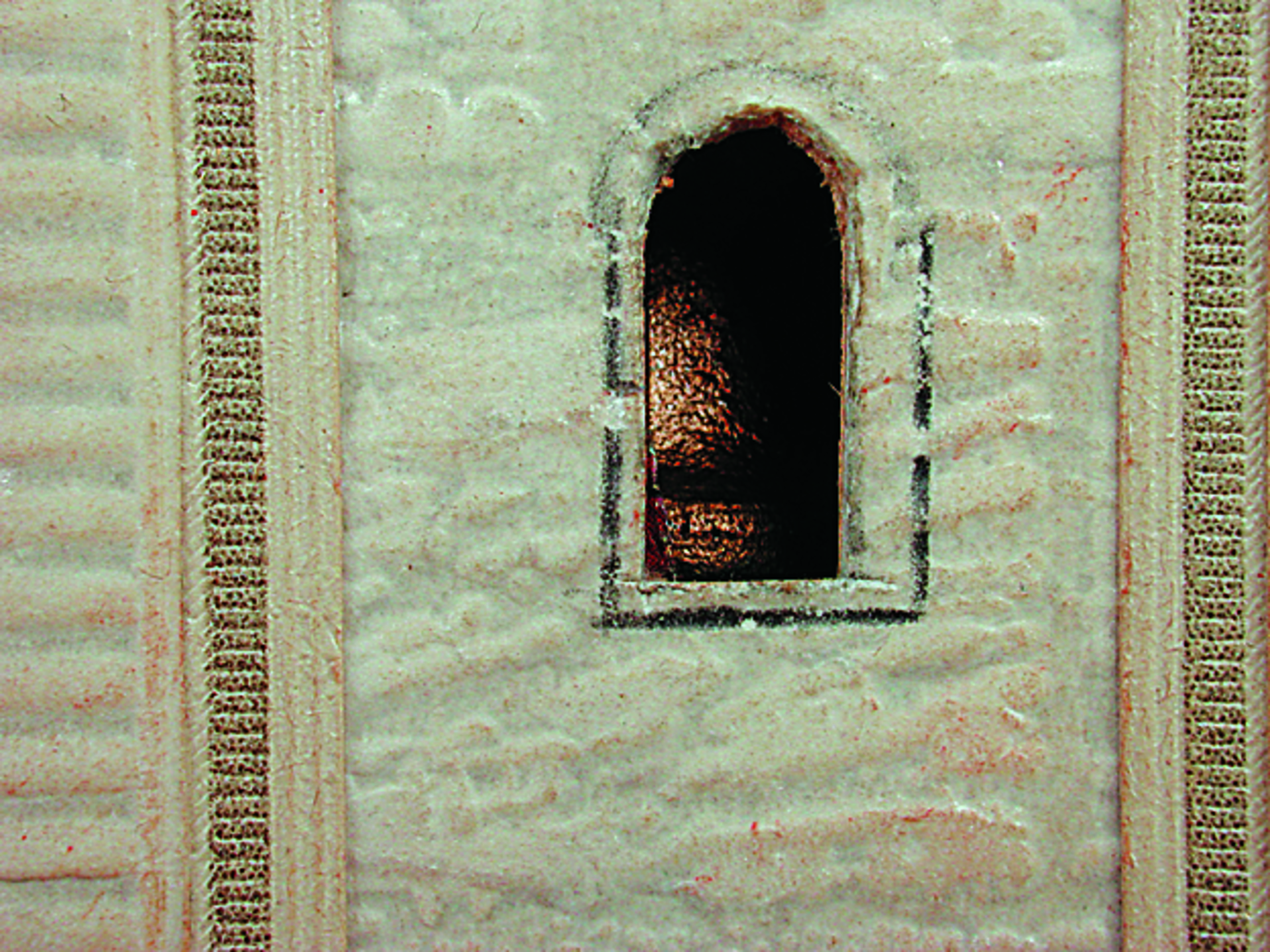 Anmerkung der Redaktion: Nicht von jedem Haus sind alle einzelnen verwendeten Materialien dokumentiert. Tatsächlich verbaute der Bastler auch Zigarettenschachteln, Spinnenpapier, Pappmaschee, Tapetenreste, Bunt- und Silberpapiere, Stoffe, Synthetikfasern, d-c-fix-Folien, Schriftproben, Zeitungsschnipsel und ausgewertete Illustrierte, Kartonagen, Holzabfälle aller Art, Uhu, Holzleim und Tapetenkleister.
