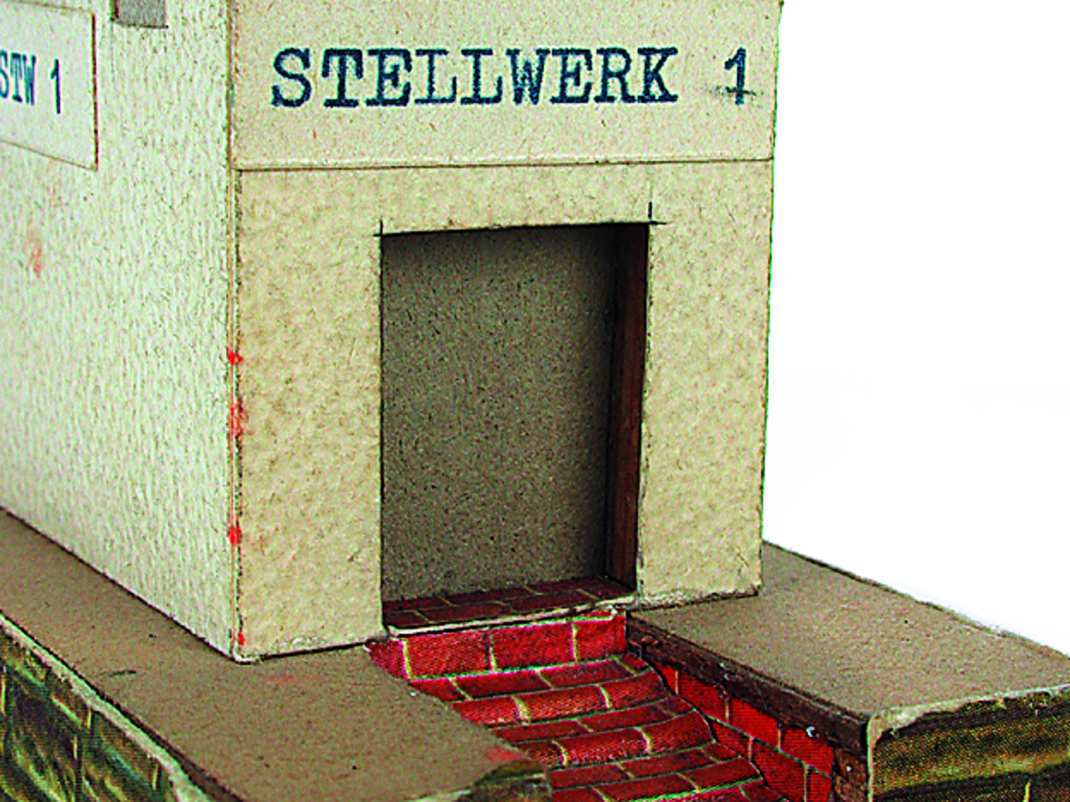 Anmerkung der Redaktion: Nicht von jedem Haus sind alle einzelnen verwendeten Materialien dokumentiert. Tatsächlich verbaute der Bastler auch Zigarettenschachteln, Spinnenpapier, Pappmaschee, Tapetenreste, Bunt- und Silberpapiere, Stoffe, Synthetikfasern, d-c-fix-Folien, Schriftproben, Zeitungsschnipsel und ausgewertete Illustrierte, Kartonagen, Holzabfälle aller Art, Uhu, Holzleim und Tapetenkleister.